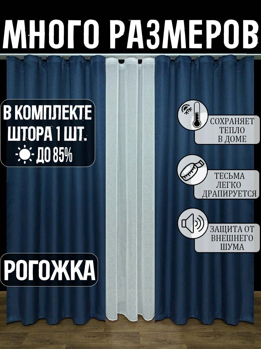 Отзывы на Готовая плотная интерьерная штора(портьера) рогожка без рисунка 400x270 см.(1шт.) со шторной лентой
