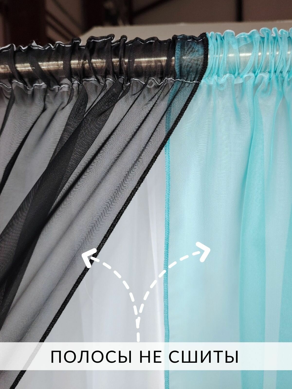 Длинные шторы для кухни Домтекс 35 Радуга, , Черный/бирюзовый, левая сторона информация: