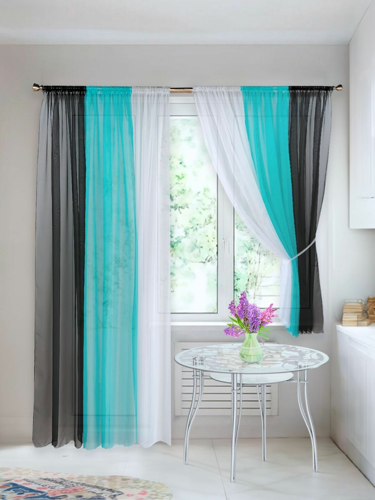 10 цен на Длинные шторы для кухни Домтекс 35 Радуга, , Черный/бирюзовый, левая сторона