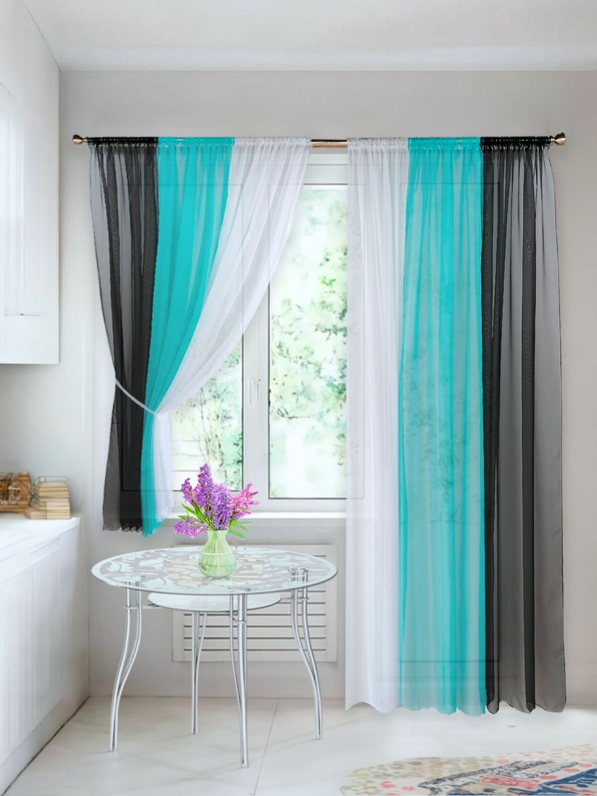 Длинные шторы для кухни Домтекс 35 Радуга, , Черный/бирюзовый, левая сторона 2 890 ₽