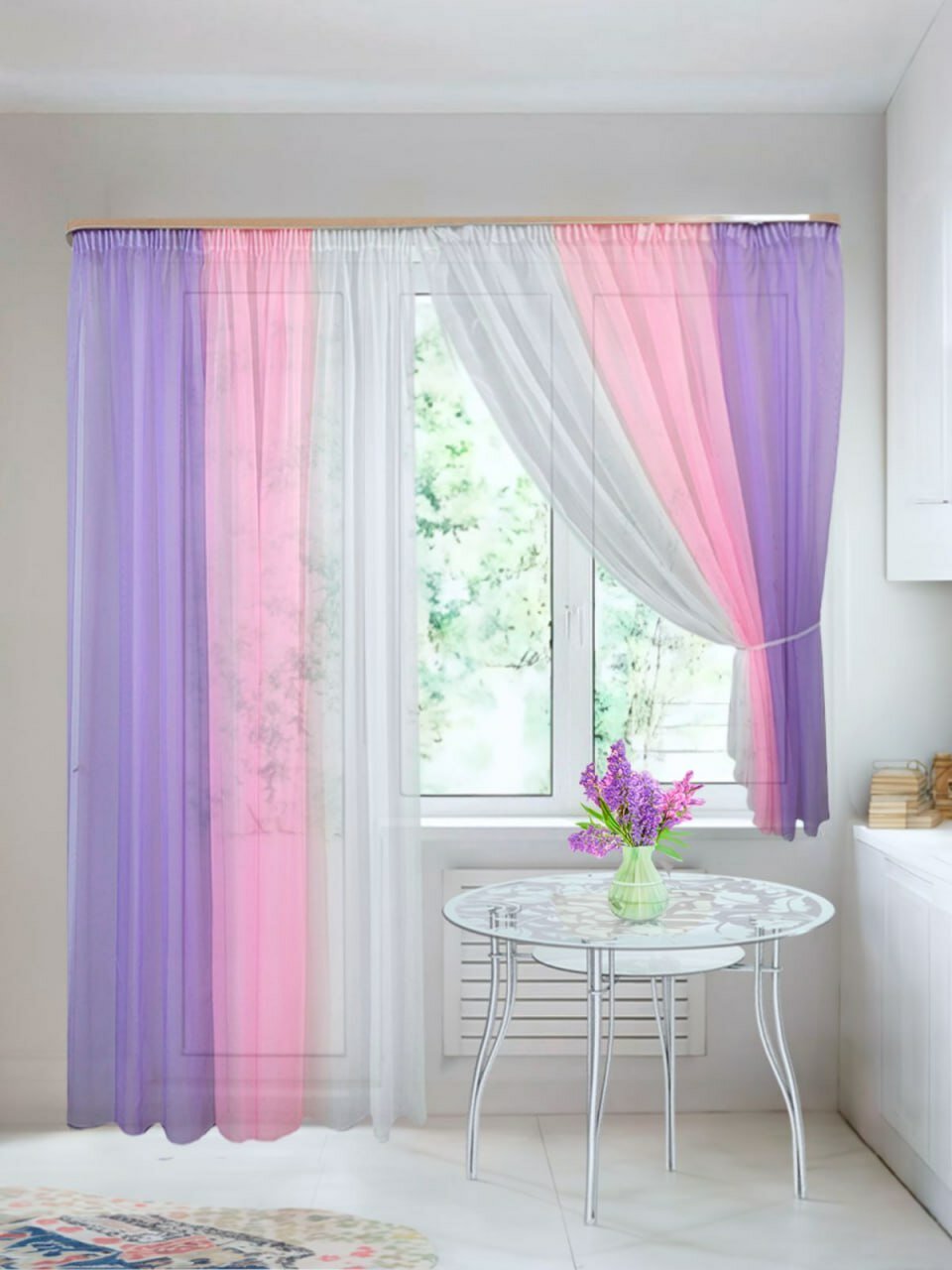 Отзывы на Тюлевые шторы Домтекс35 "Радуга левая", вуаль, 290*250, 290*180 см, сиреневый