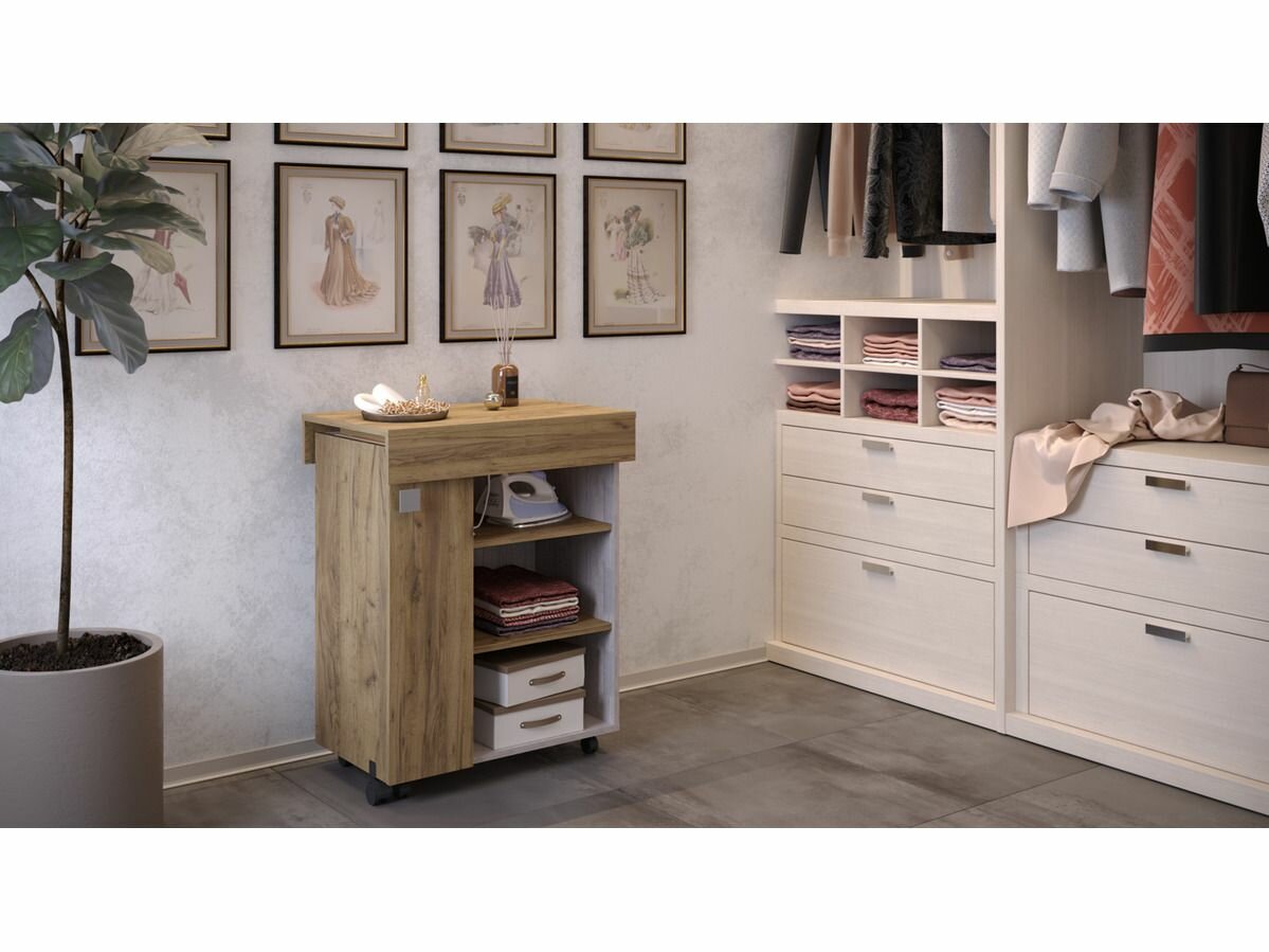Настенная гладильная доска за зеркалом, встраиваемая в шкаф 115х40см. Дуб Сонома
