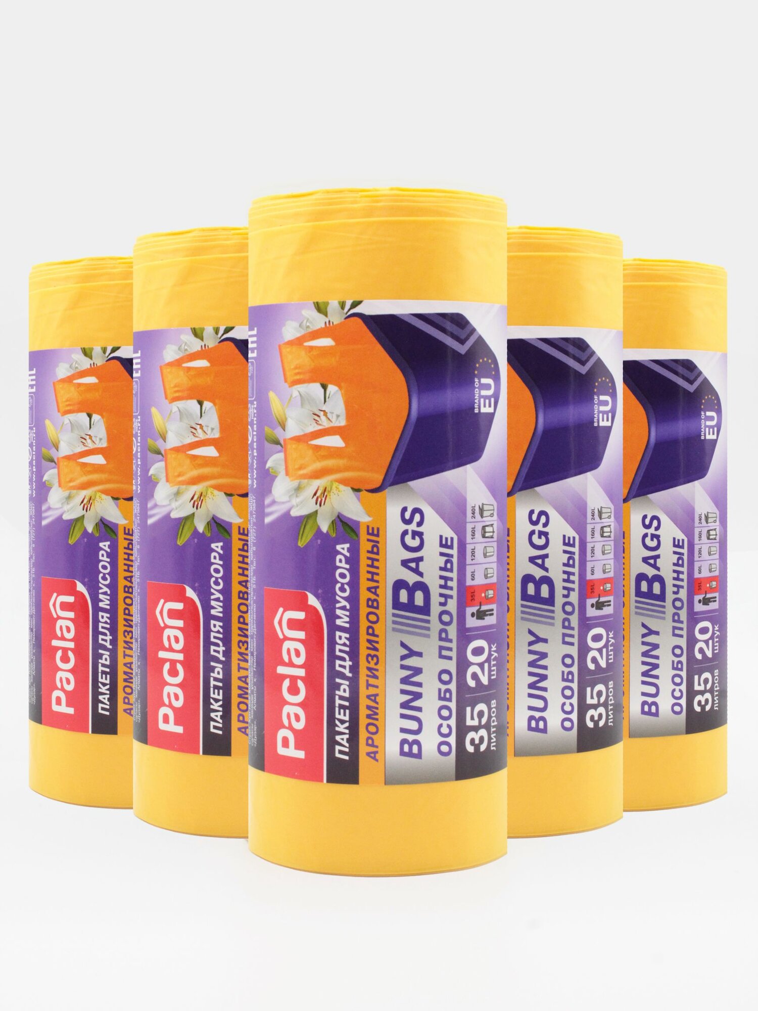 Пакеты для мусора 35л ароматизированные "Paclan" BUNNY Bags, 5уп (100шт) информация: