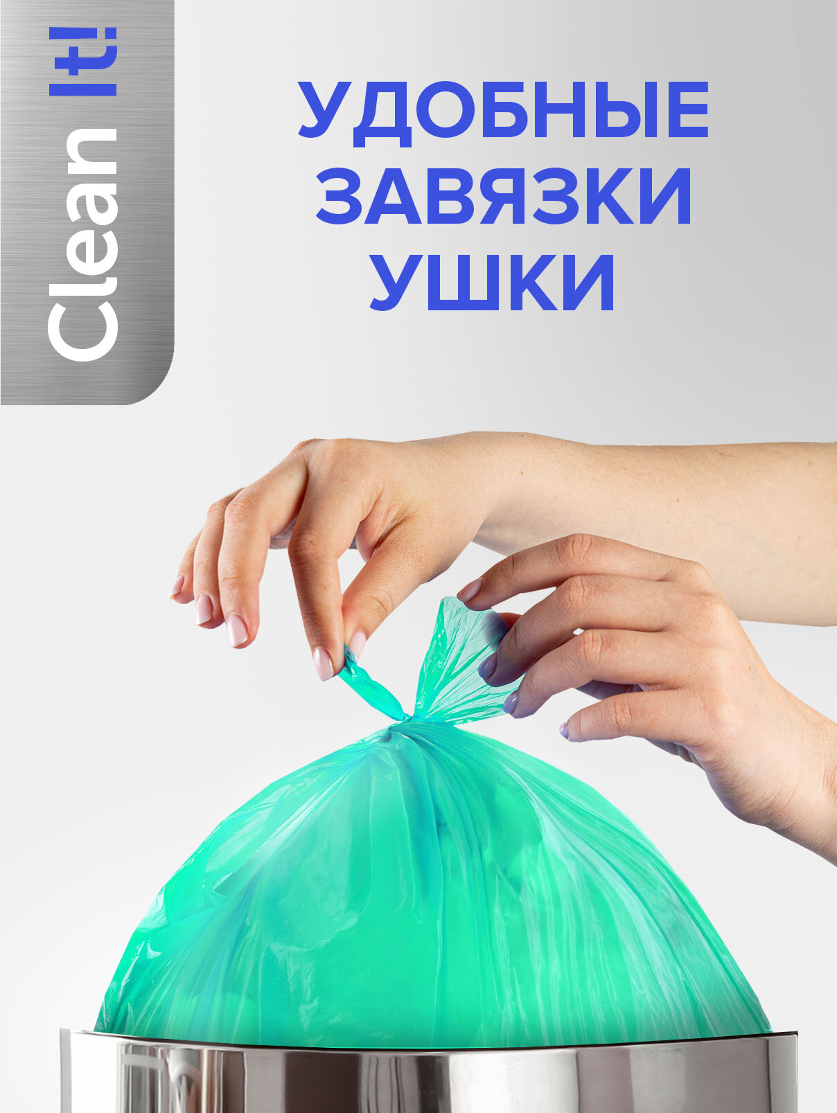 Мешки (пакеты) для мусора с ушками, 60 л, 20 шт, прочные бирюзовые мусорные пакеты информация: