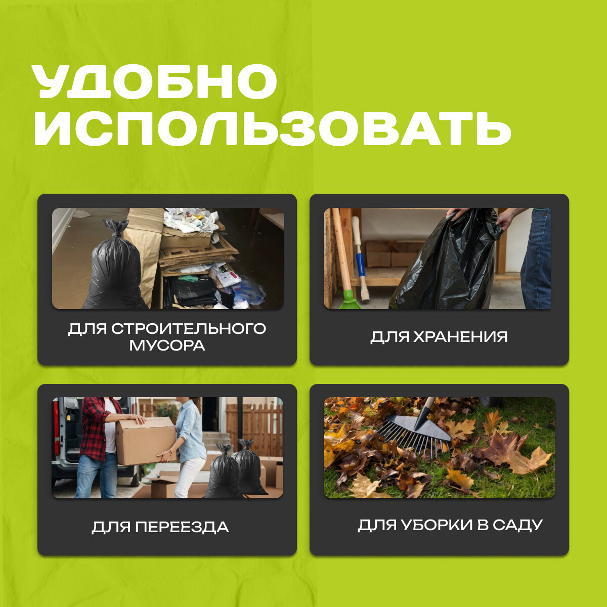 Мешок мусорный 180 литров, сверхпрочный, для строительного мусора, для уборки территории, для уборки после ремонта