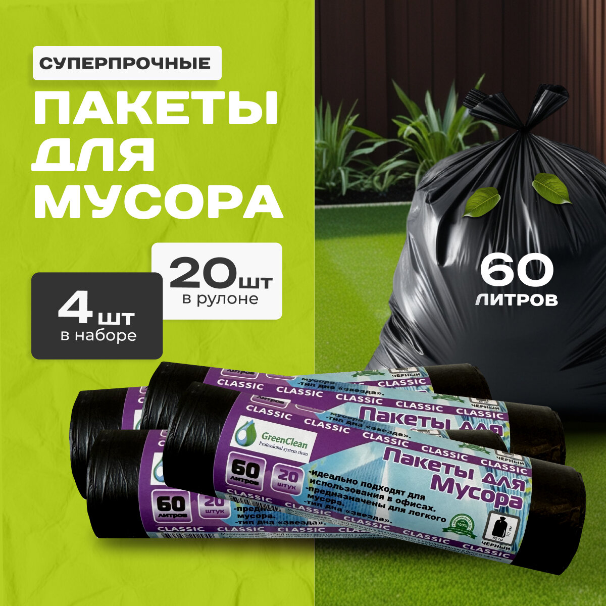 Мешки для Мусора Green Clean Classic 60 л 80 шт, Черные информация: