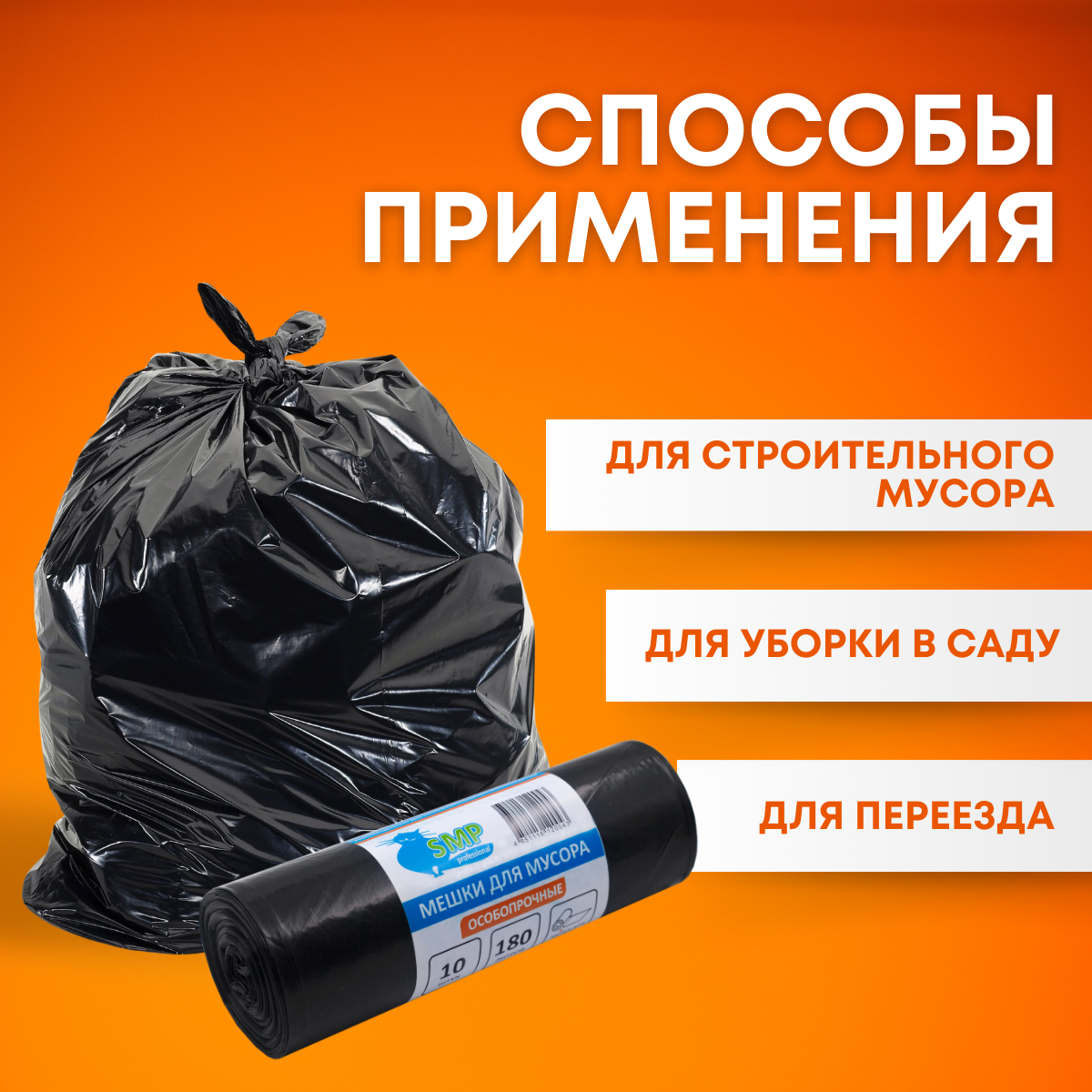 10 цен на Мешки для мусора пакеты 180 литров SMP особопрочные черный 60 микрон 10 штук