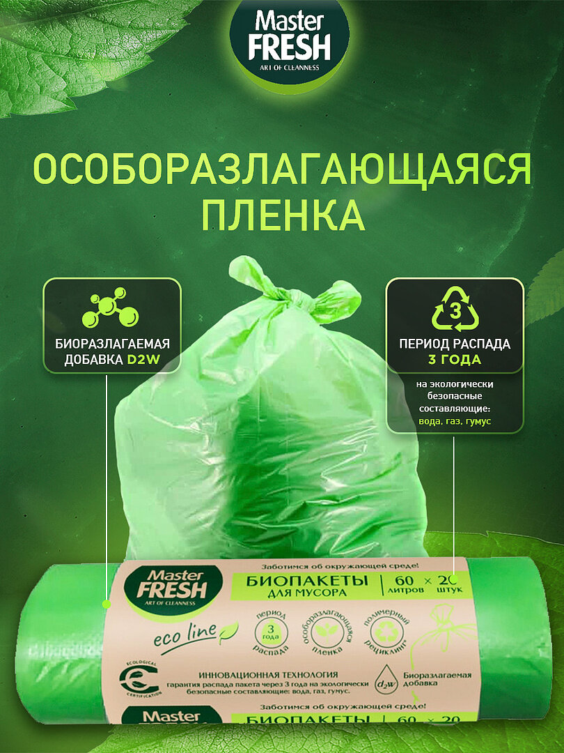 Пакеты для мусора Master Fresh набор био 9мкм салатовые 60л/20шт*3шт информация: