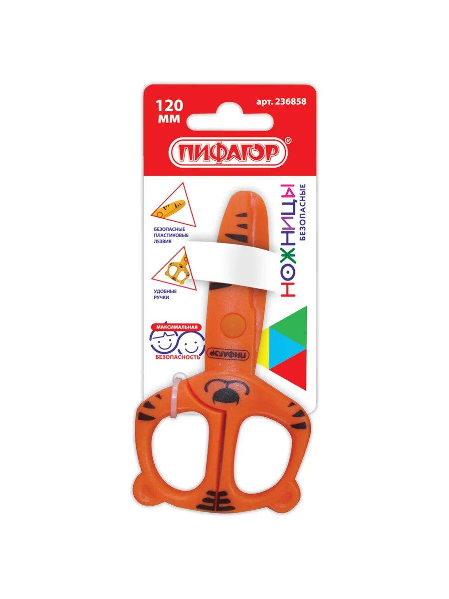 Ножницы "Тигренок", 120 мм, с безопасными пластиковыми лезвиями, оранжевые информация: