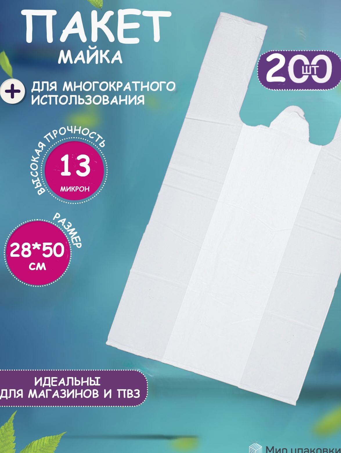 Пакет майка ПНД 28*50 13 мкр, 200шт, цвет белый информация: