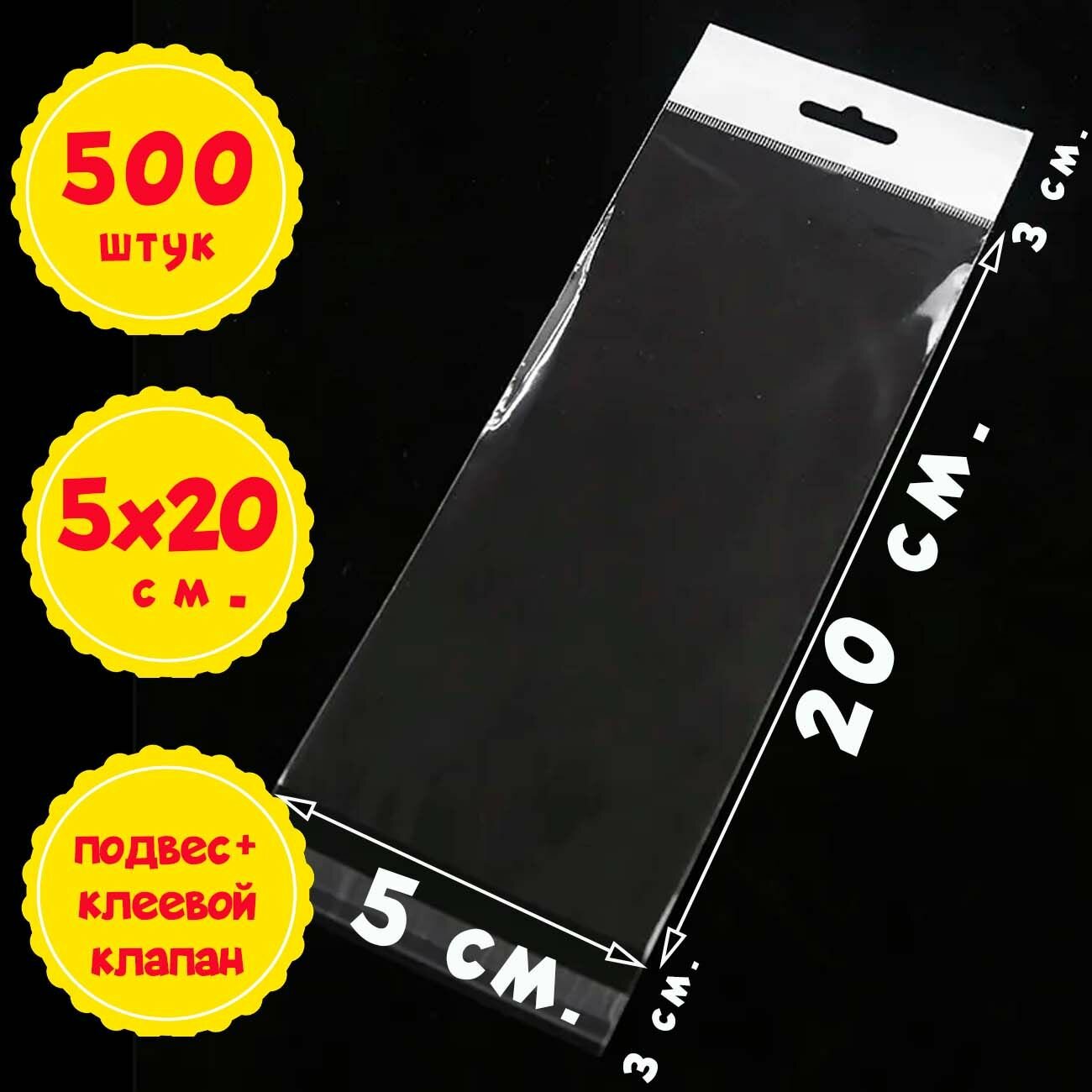 500 пакетов 5х20+6 см с белым европодвесом и клеевым клапаном упаковочные информация: