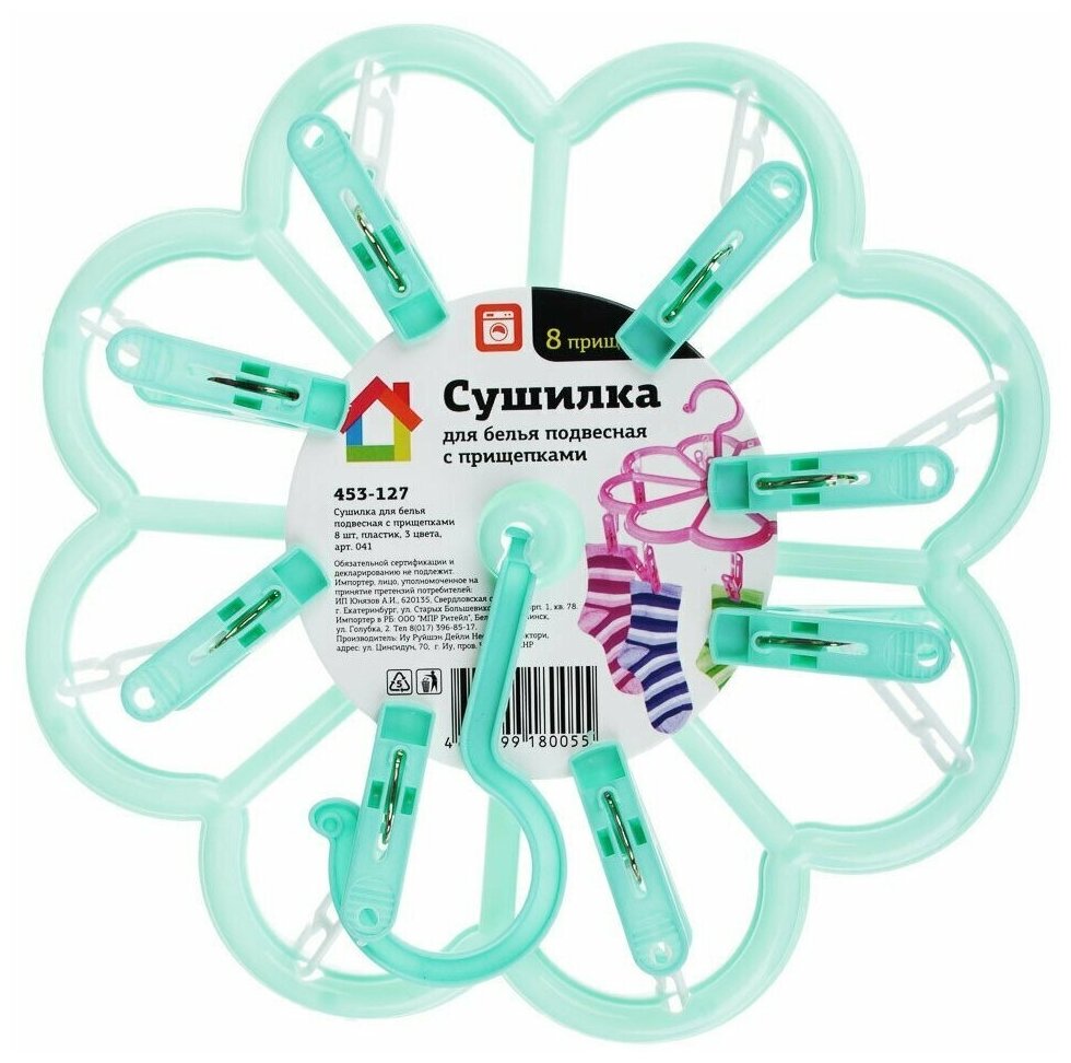 Сушилка для белья подвесная с прищепками 8шт, пластик, зеленая, VETTA информация: