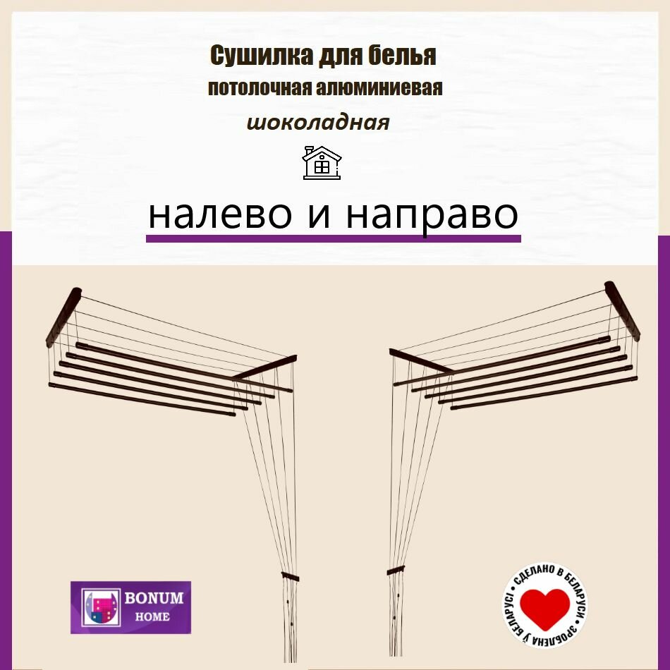Сушилка для белья потолочная шоколадная, навесная, алюминиевая-130см,5 прутьев. Беларусь информация: