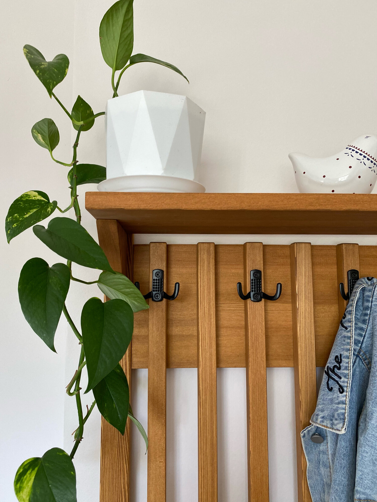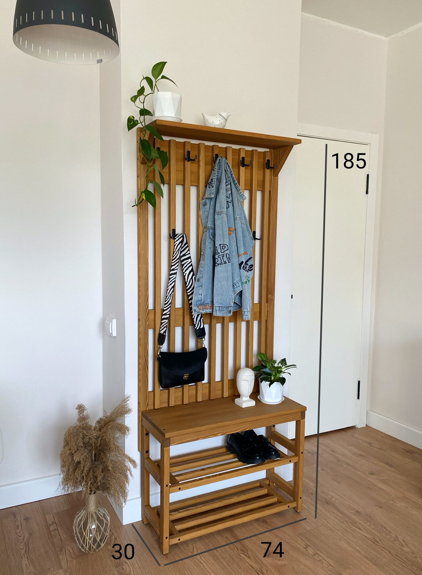 Отзывы на Комплект в прихожую, деревянная вешалка с обувницей, из массива Лиственницы 185х74х30, цвет можжевельник, минимализм
