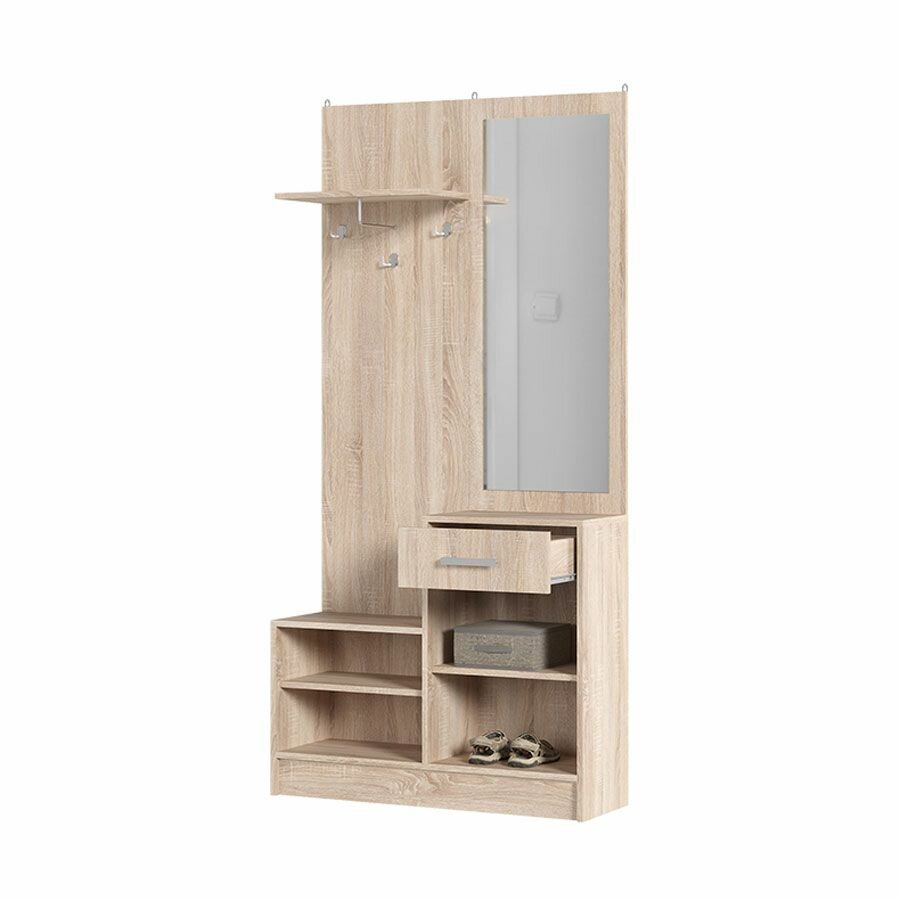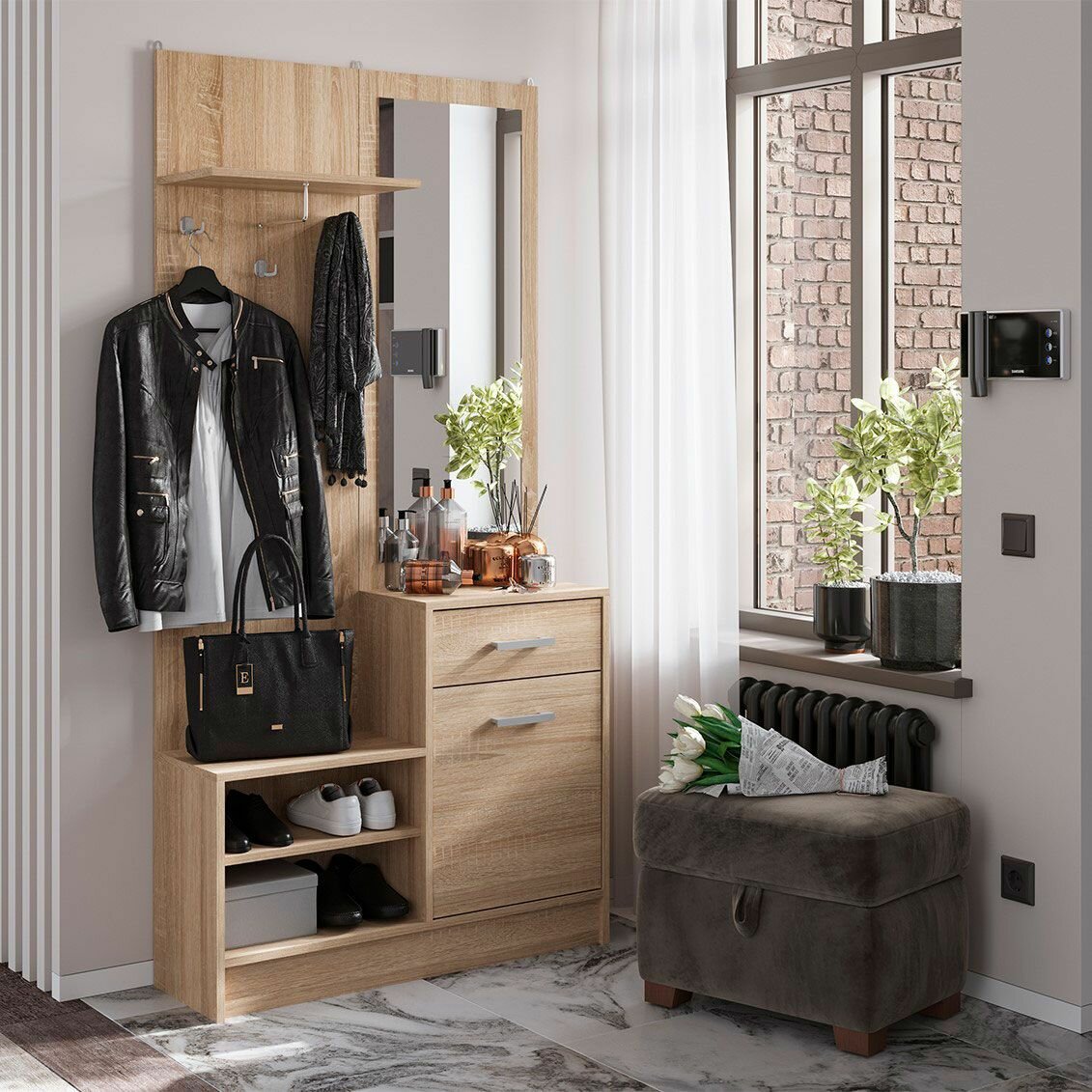 Отзывы на Прихожая МФ Стендмебель Дебора, ЛДСП, дуб сонома, со штангой, зеркалом и полками