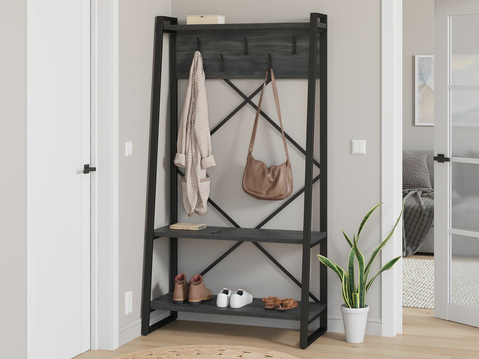 Прихожая Айсберг Лофт 100х187 Черный/Северное дерево темное информация: