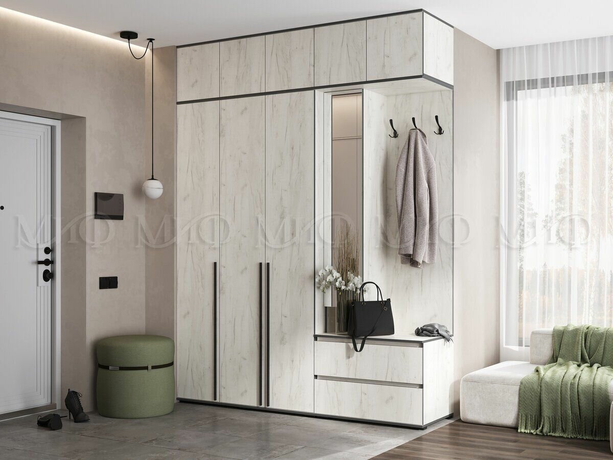 Комплект прихожей Норд Белый Дуб Крафт (шкаф 3-х ств+антр+прихожая+антр 2-х ств) информация: