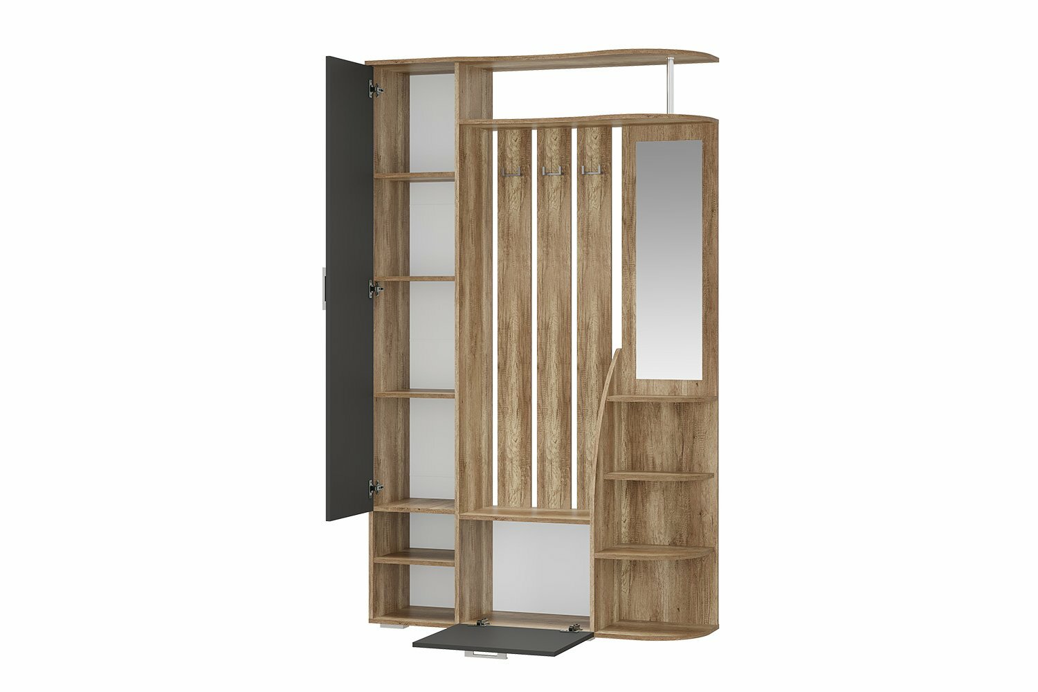 Прихожая Hoff Агата, прямая, напольная, ЛДСП/зеркало, 120,2х201,8х35,6 см, цвет дуб Каньон, графит информация:
