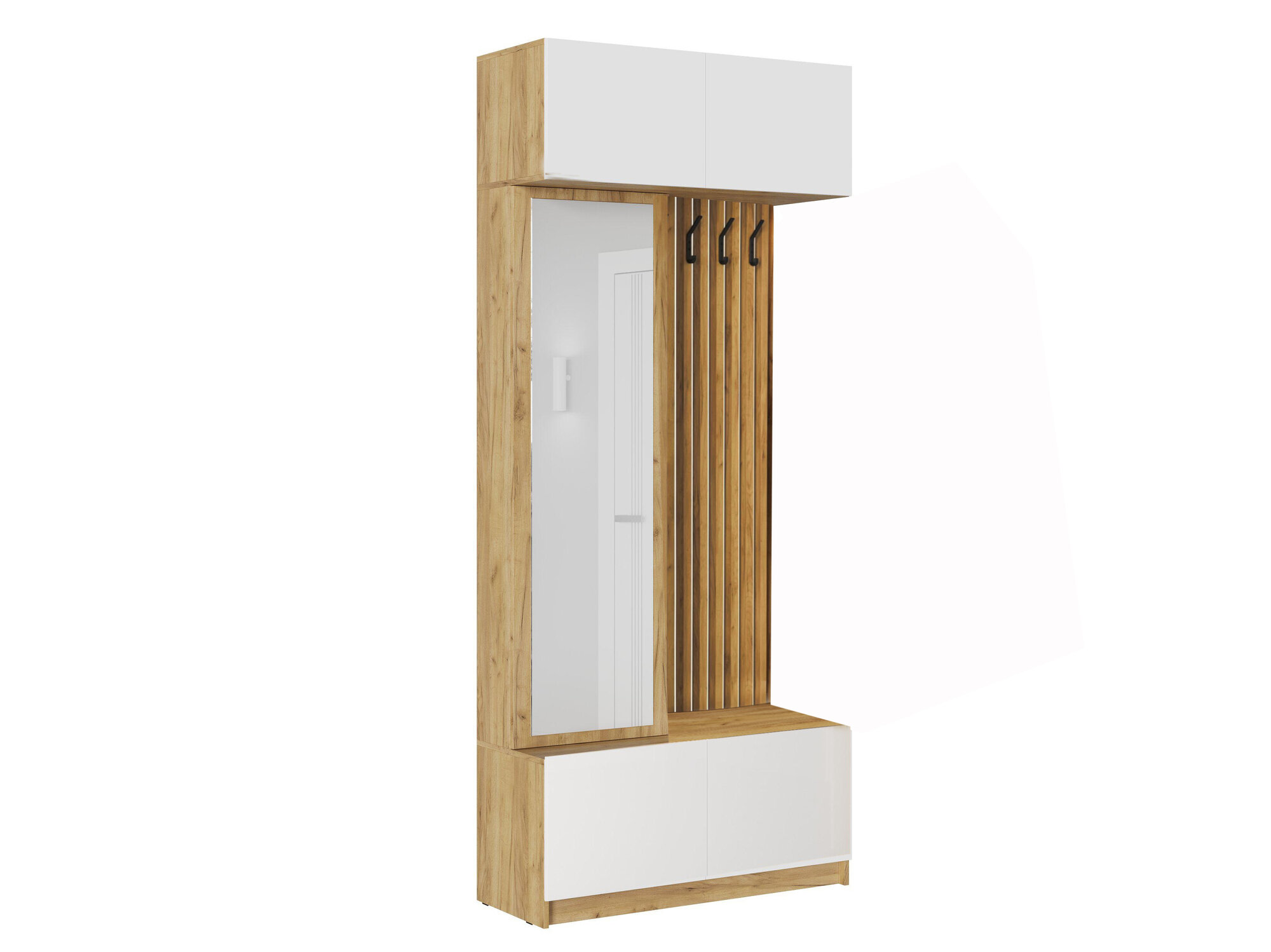 Модульная прихожая ЛДСП, со шкафом, вешалкой и зеркалом, композиция 2 Крафт Золотой/Белый глянец информация: