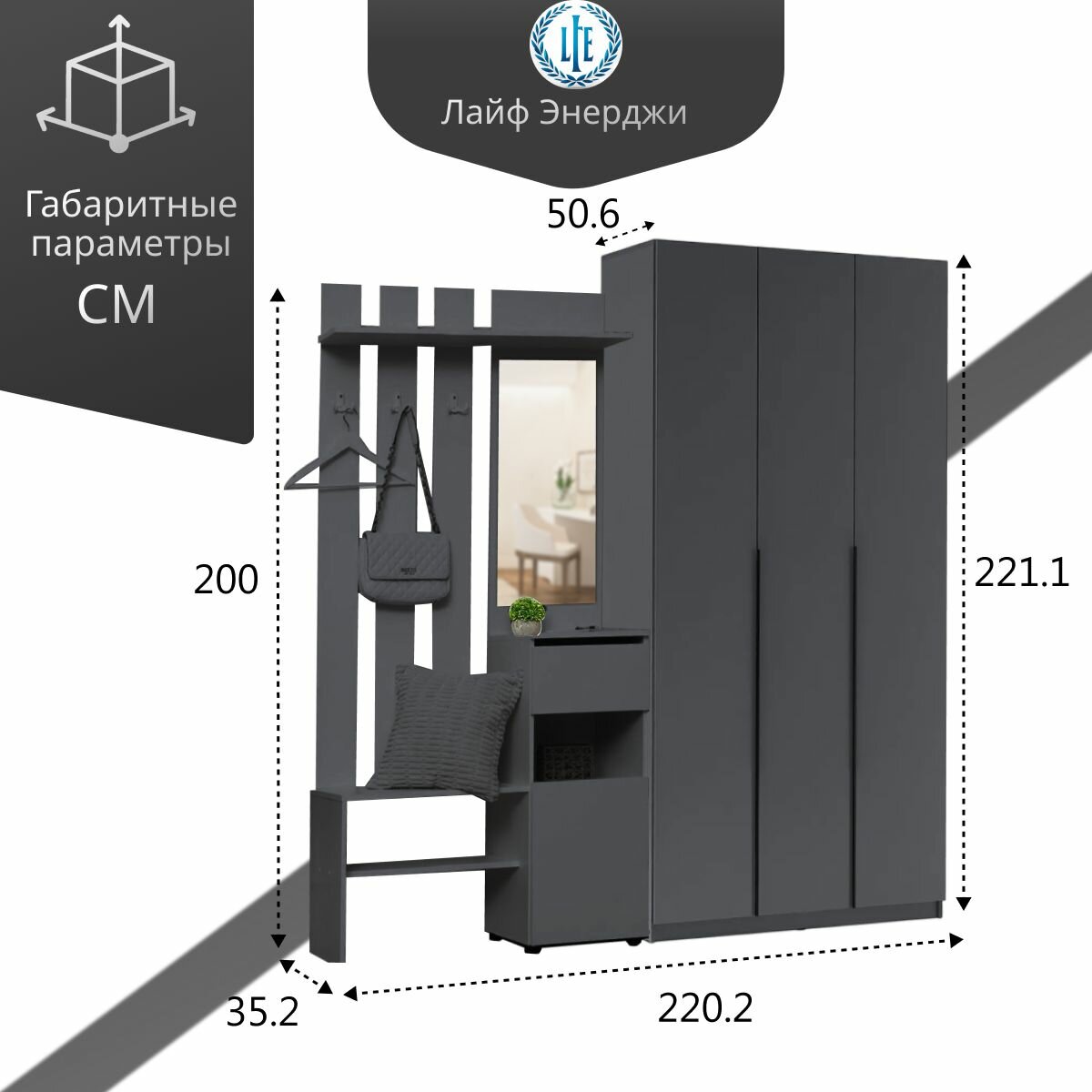 Прихожая Life Energy "Лувр", ЛДСП, графит, серая, 220x50.6x221,6 см информация: