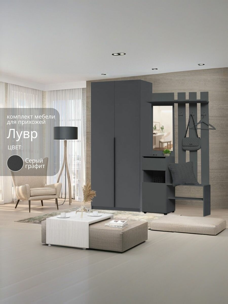 Модульная прихожая Лувр графит серый, 180.2х50.6х221.6 см 18 281 ₽