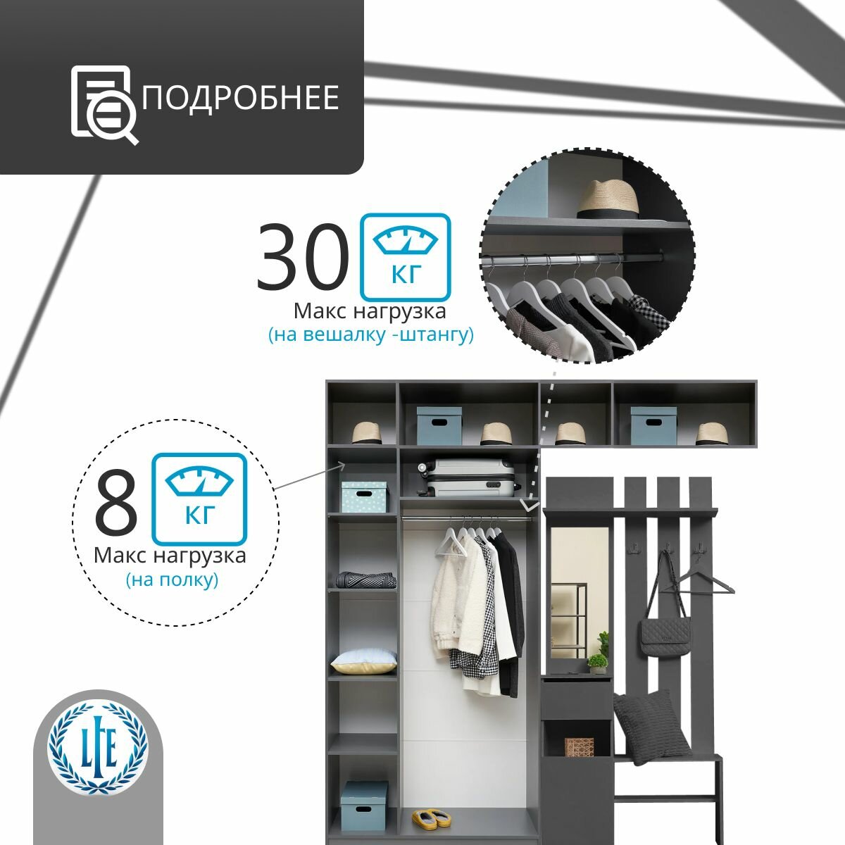Модульная прихожая Лувр графит серый, с 7-ю полками, 220.2х50.6х221.6 см 24 592 ₽