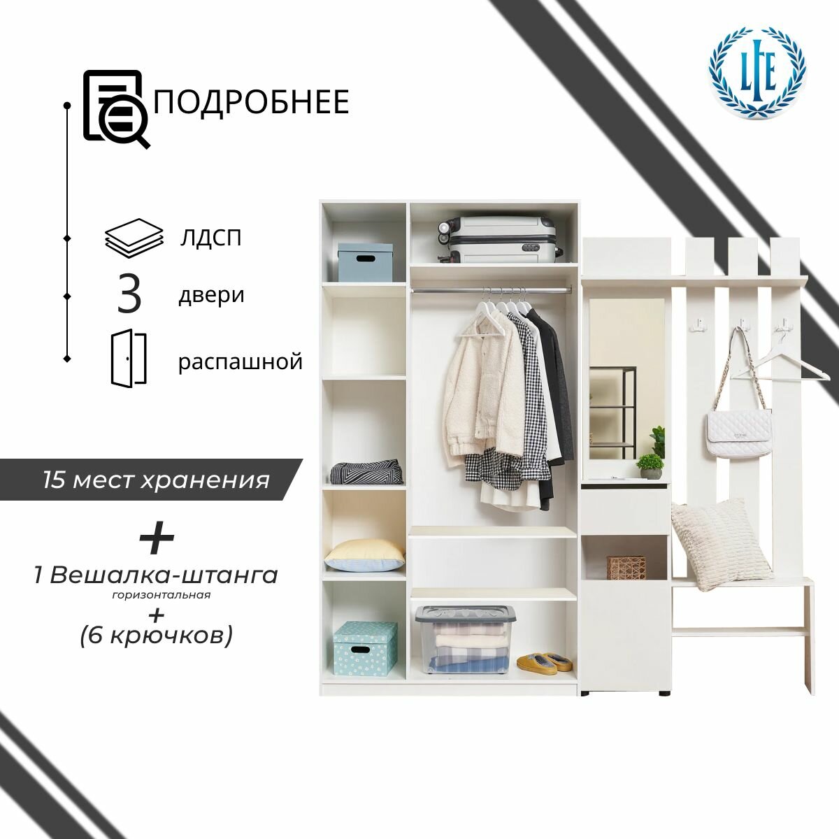 Модульная прихожая Лувр белый текстурный, с 2-мя выдвижными ящиками и 3-мя полками, 180.2х50.6х221.6 см 21 537 ₽