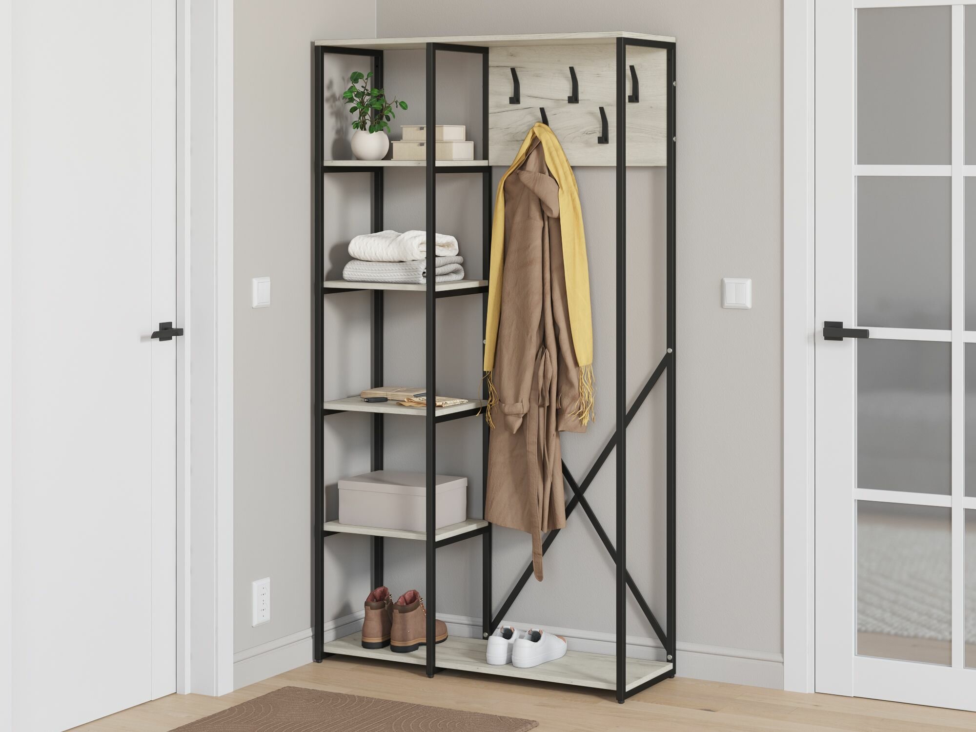 Прихожая Айсберг Лофт 100/6 Черный/Дуб крафт белый информация:
