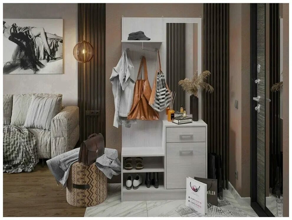 10 цен на Прихожая «Ларго-2», с зеркалом, белый текстурный (115х42х210)