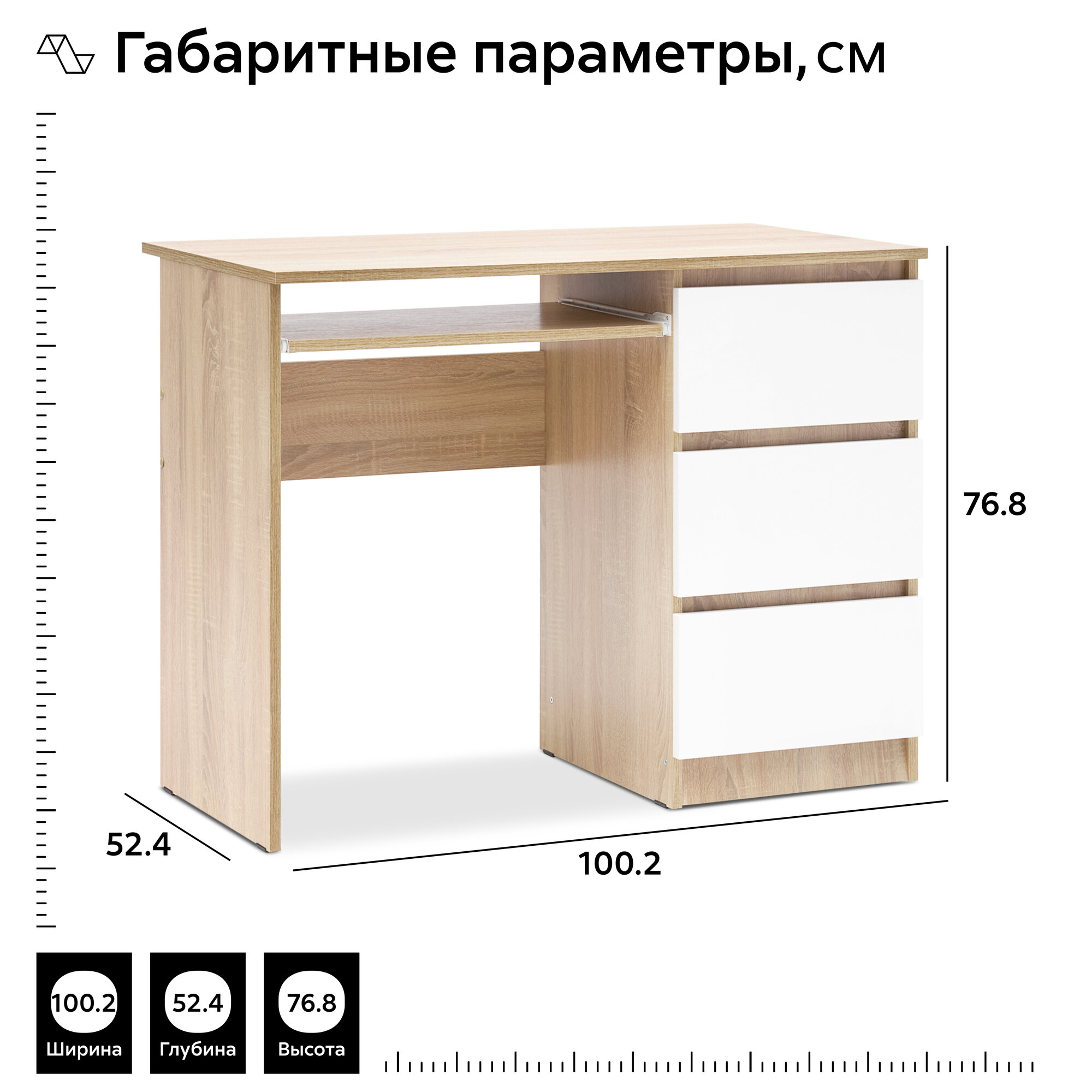 Стол письменный с ящиками Нонтон Челси белый глянец / дуб сонома 100х52.4х76.8 см информация: