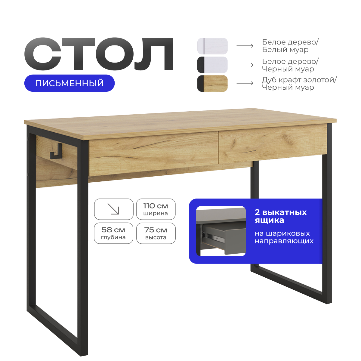 Письменный стол "Юниор" с ящиками, Дуб крафт золотой/черный муар, Mebelson 11 750 ₽