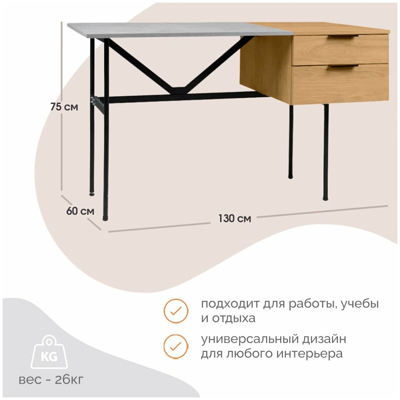 Стол письменный, компьютерный лофт INCUBE D004.140. NAT, дуб золотой, 140х60х75см, с органайзером, ЛДСП, металл