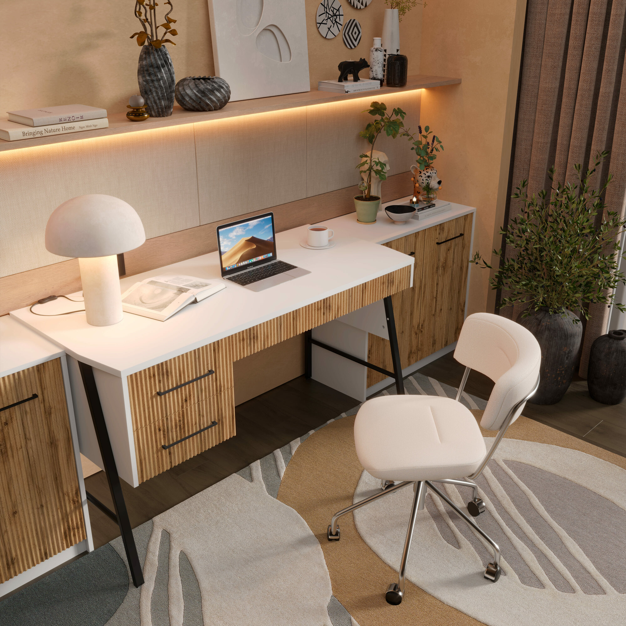 10 цен на Стол письменный с одной тумбой Ростид White ТМ ДЭФО 140x64x78см, Белый / Дуб натюрель