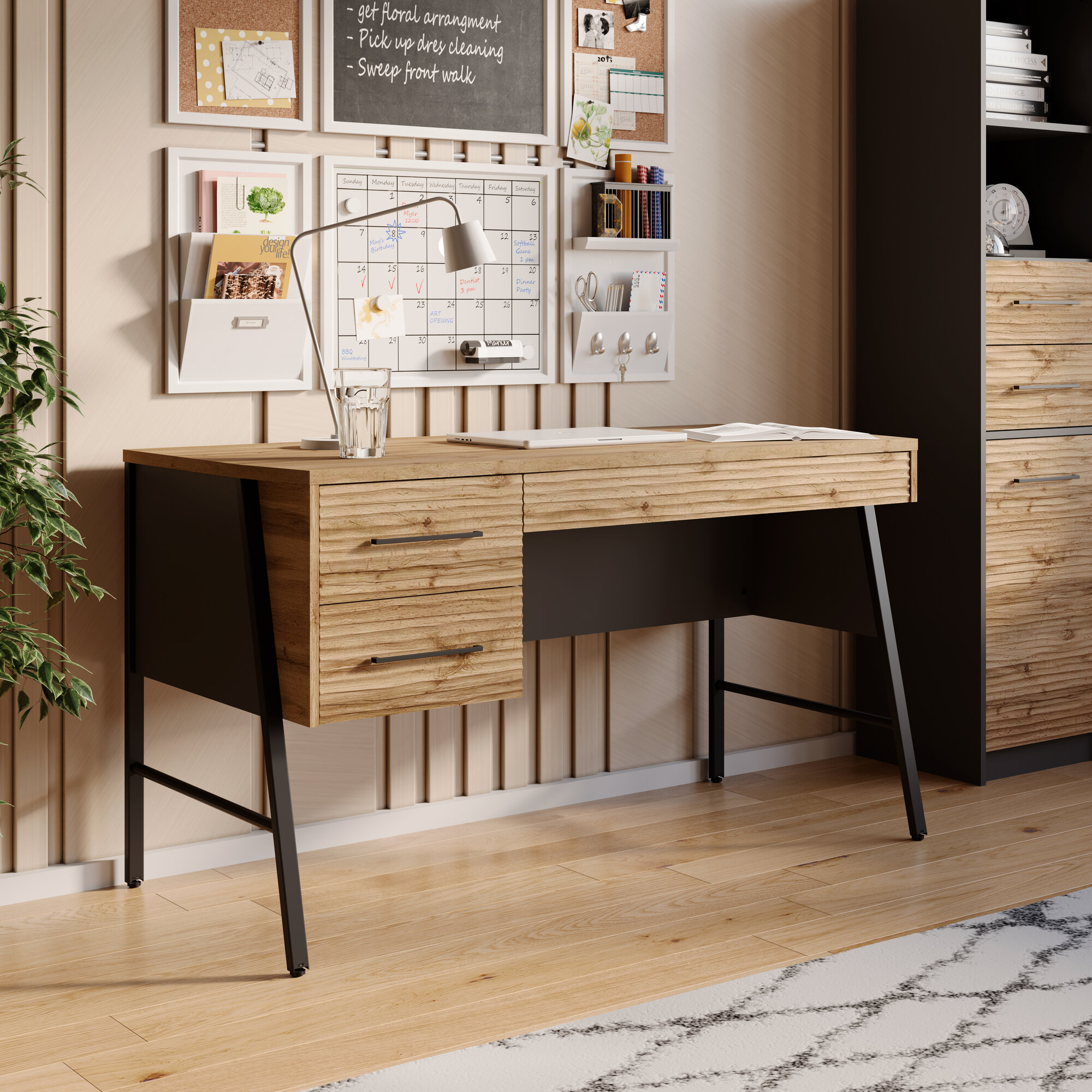 10 цен на Стол письменный, компьютерный Ростид ТМ ДЭФО140х64х78, прямой, с ящиками, дуб натюрель / черный графит