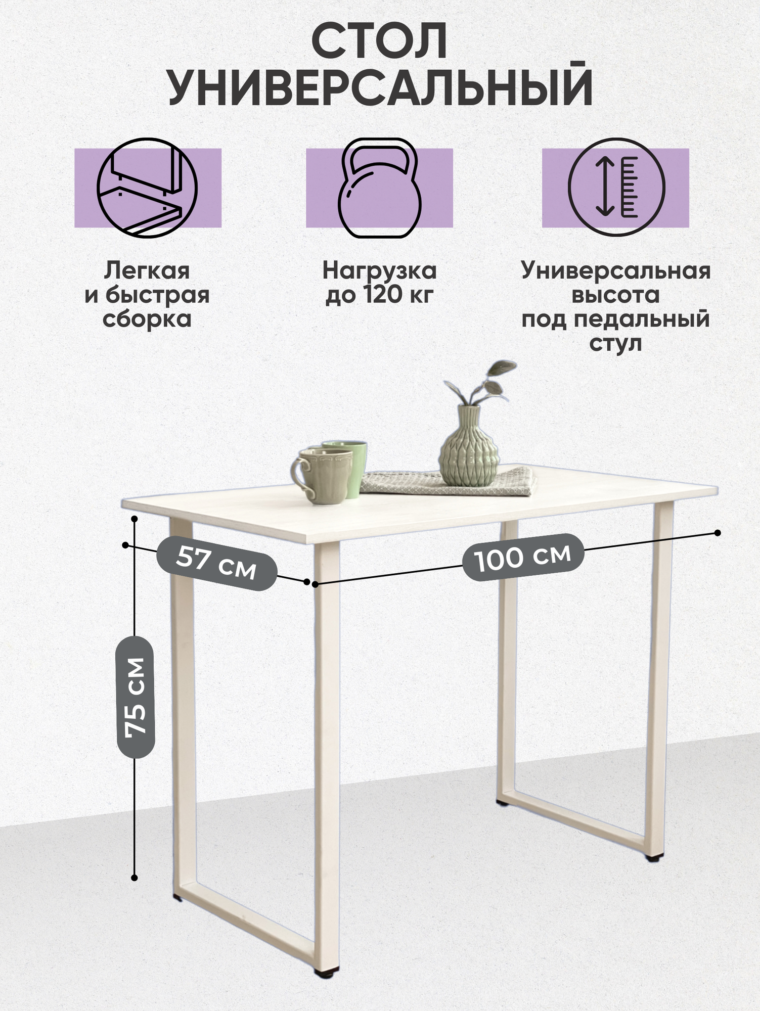 Стол письменный POLLY.TIME "Loft", универсальный, 100х75х57 см, ЛДСП, металл 3 900 ₽