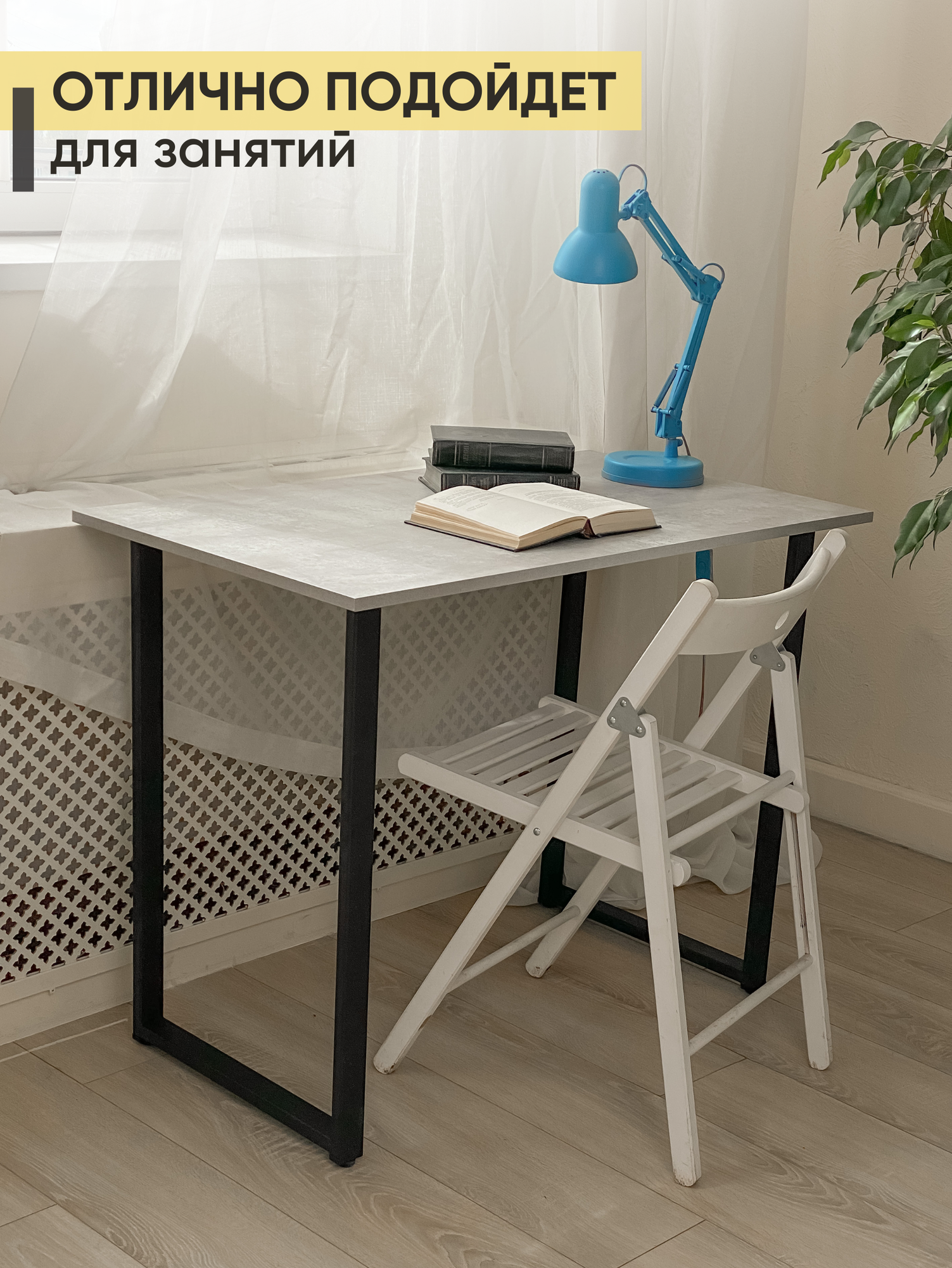 Стол письменный кухонный PollyTime Loft, 100x75x57 см, ЛДСП, без ящиков, серый информация: