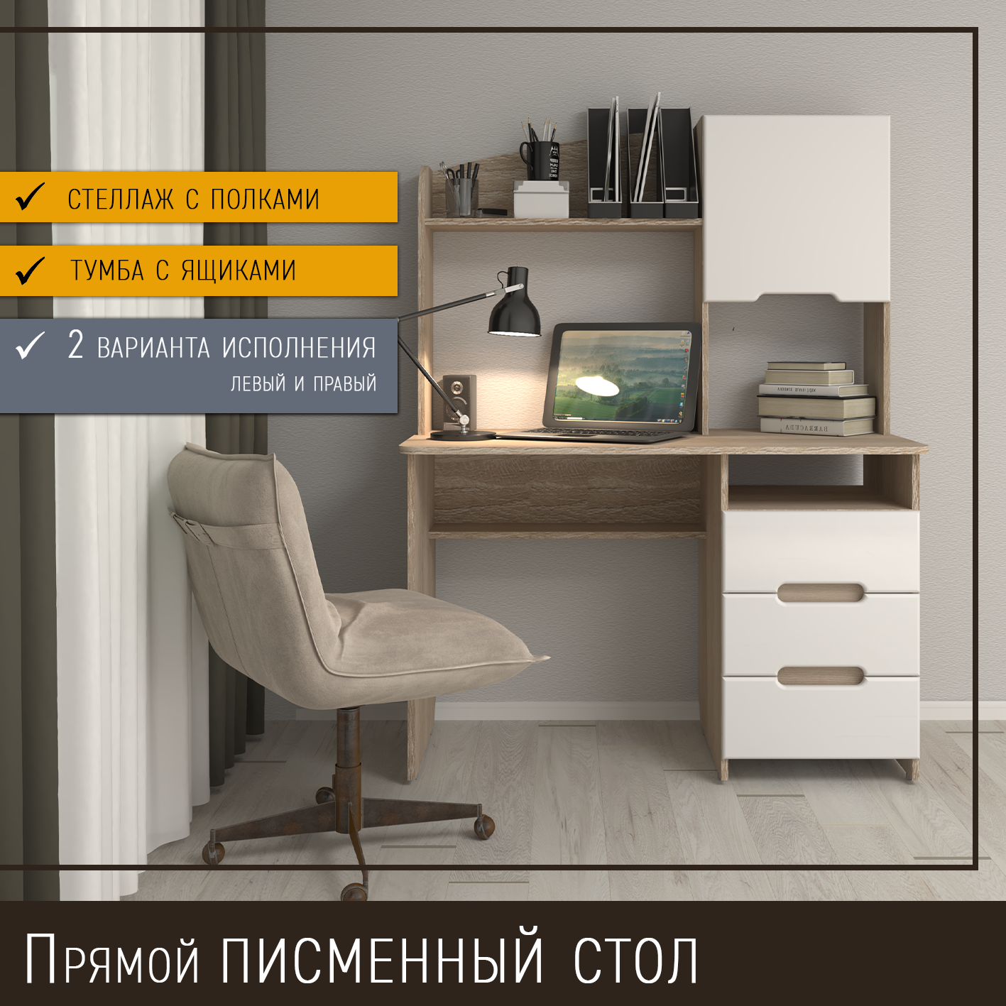 10 цен на Компьютерный стол с полками, прямой, белый глянец, ящики на правую сторону