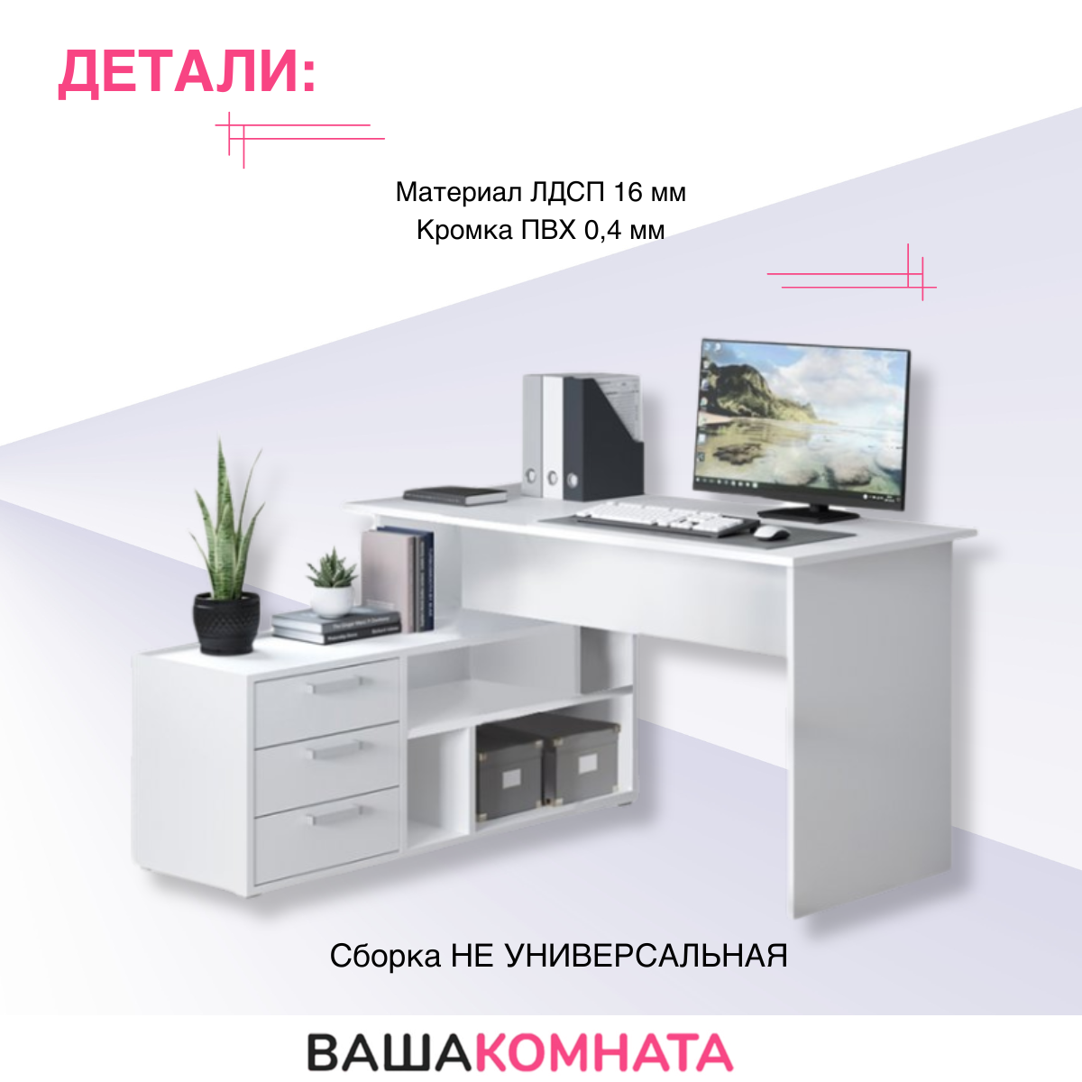 10 цен на Стол письменный компьютерный для школьника "СК-11" , с ящиками , с тумбой, угловой , Белый