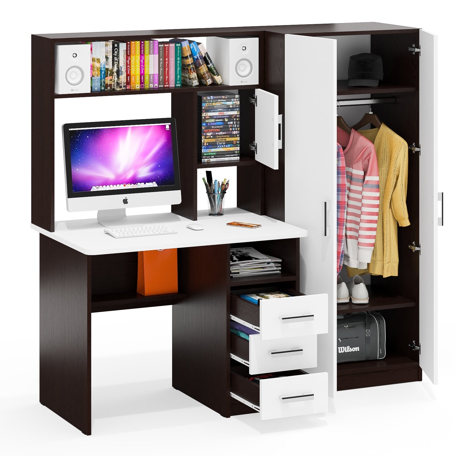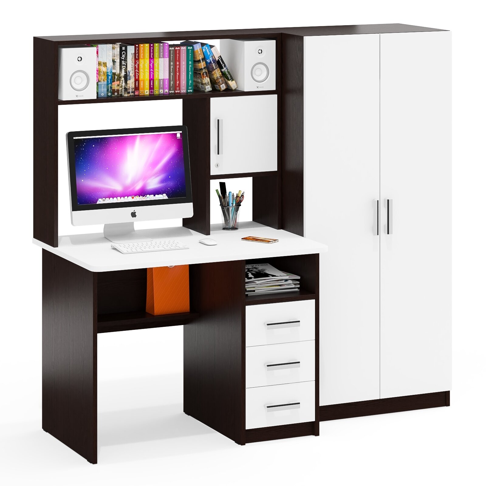 10 цен на Стол компьютерный со шкафом Мебельный Двор СК-9 венге/белый шагрень, 172х70х160 см