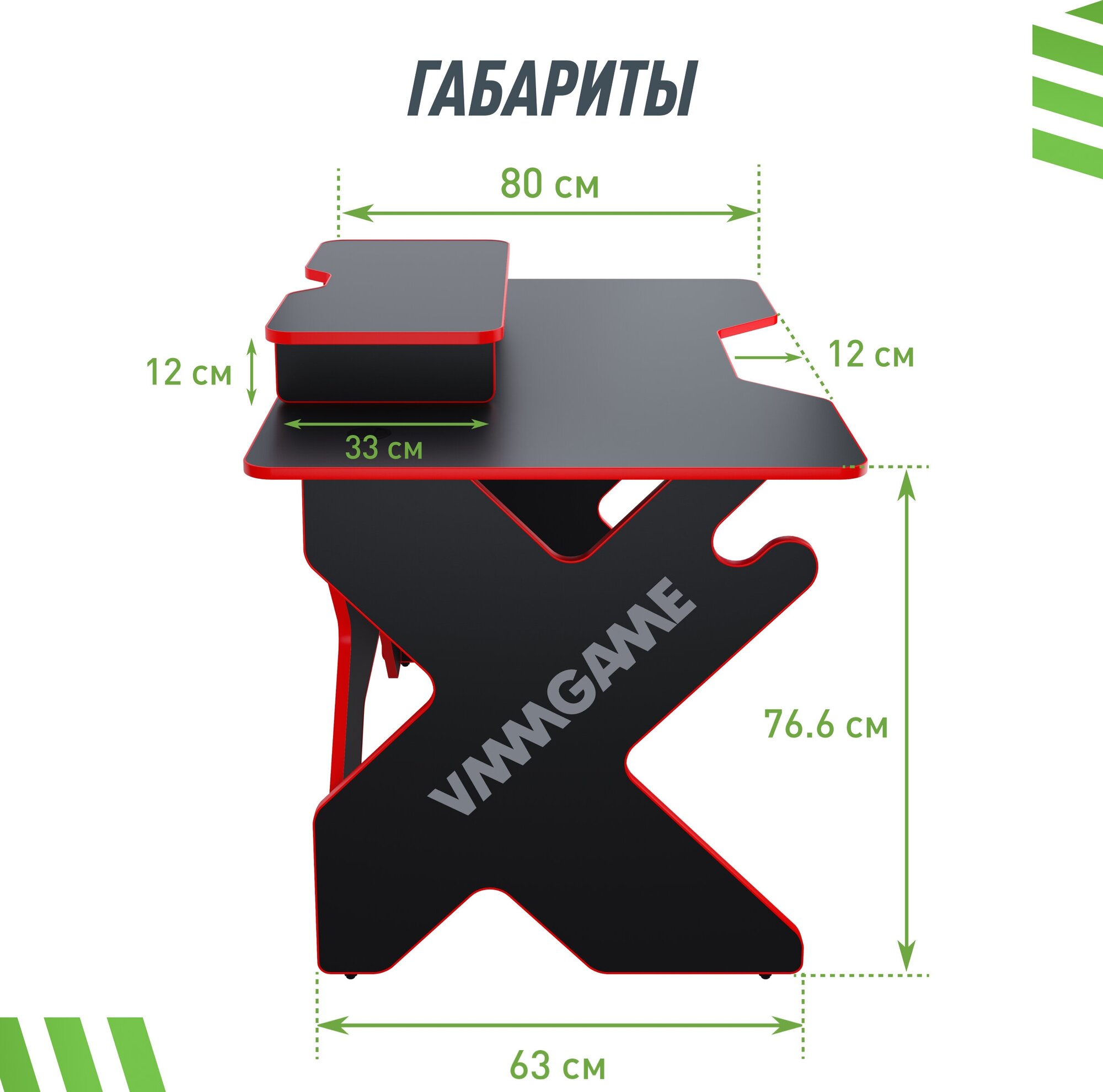 Игровой стол VMMGAME SPACE 120 DARK красный с подставкой для монитора BASE информация: