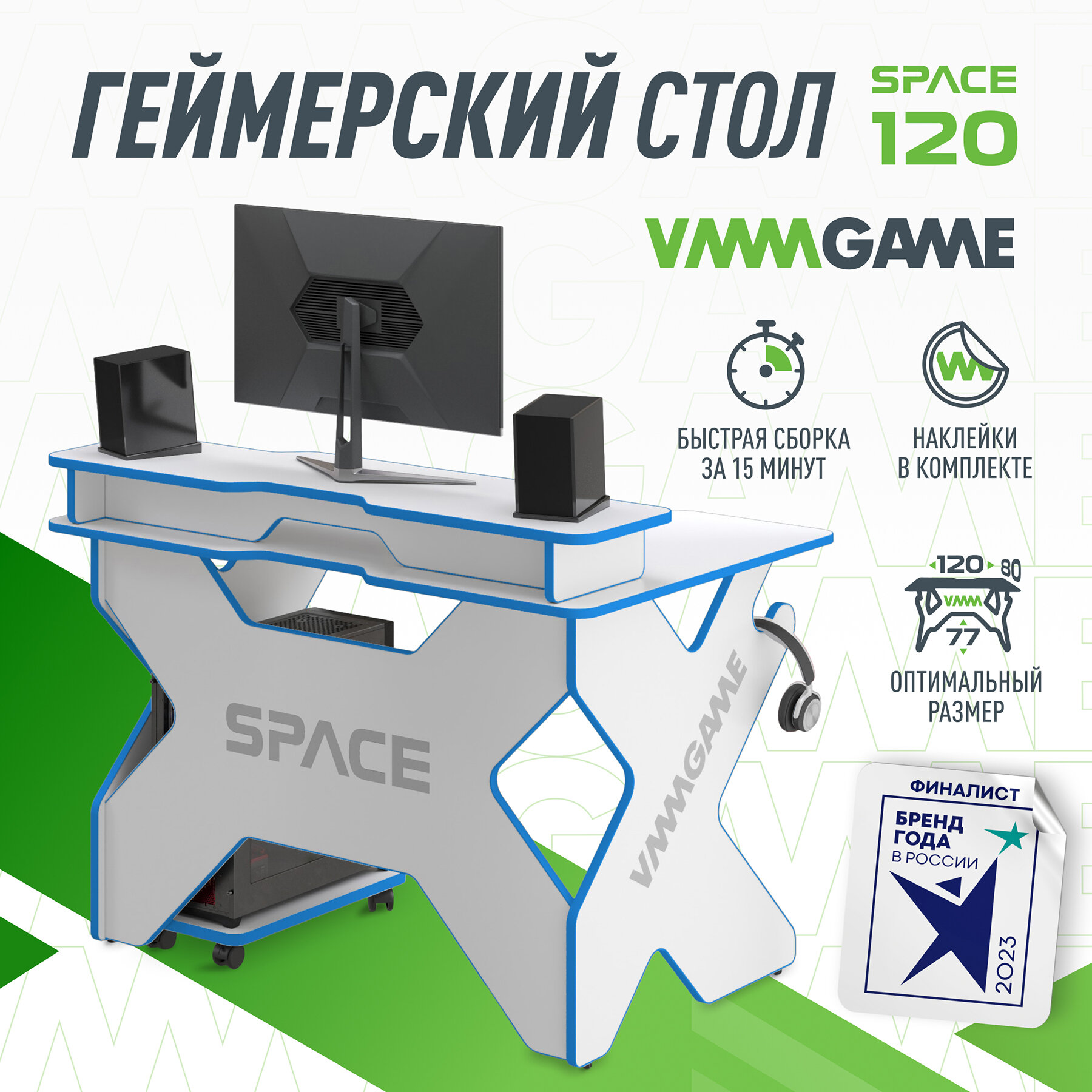 Игровой стол VMMGAME SPACE 120 LIGHT синий с подставкой для монитора BASE информация: