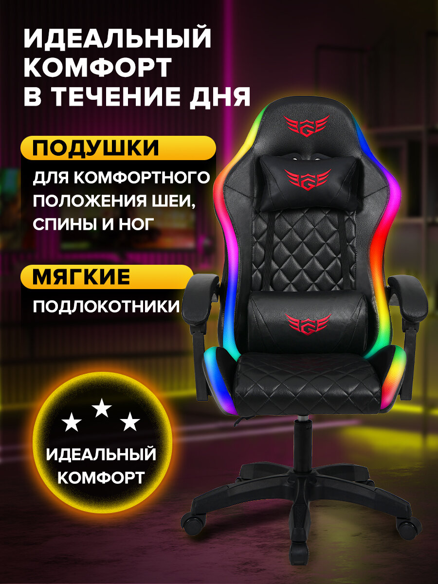 Игровое кресло /Кресло руководителя, FONLUX 1207RGB-черный, металлический каркас, регулируемый подлокотник и спинка 14 500 ₽