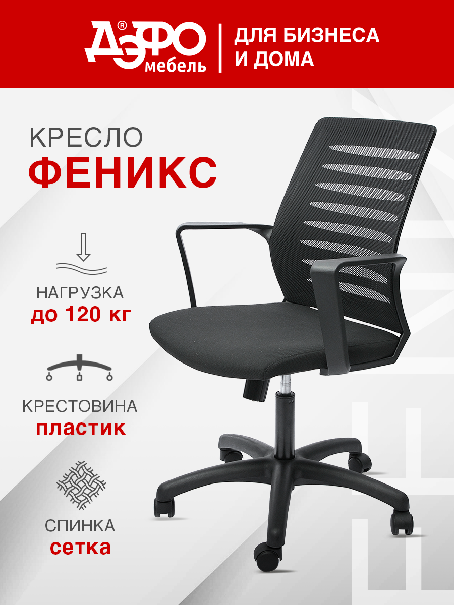 Кресло компьютерное Феникс ТМ ДЭФО, ткань, сетка , пластик, черный/черный информация: