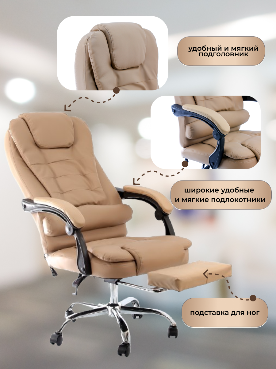 10 цен на Компьютерное офисное кресло с функцией вибромассажа и подставкой под ноги, 6-06-Бежевое