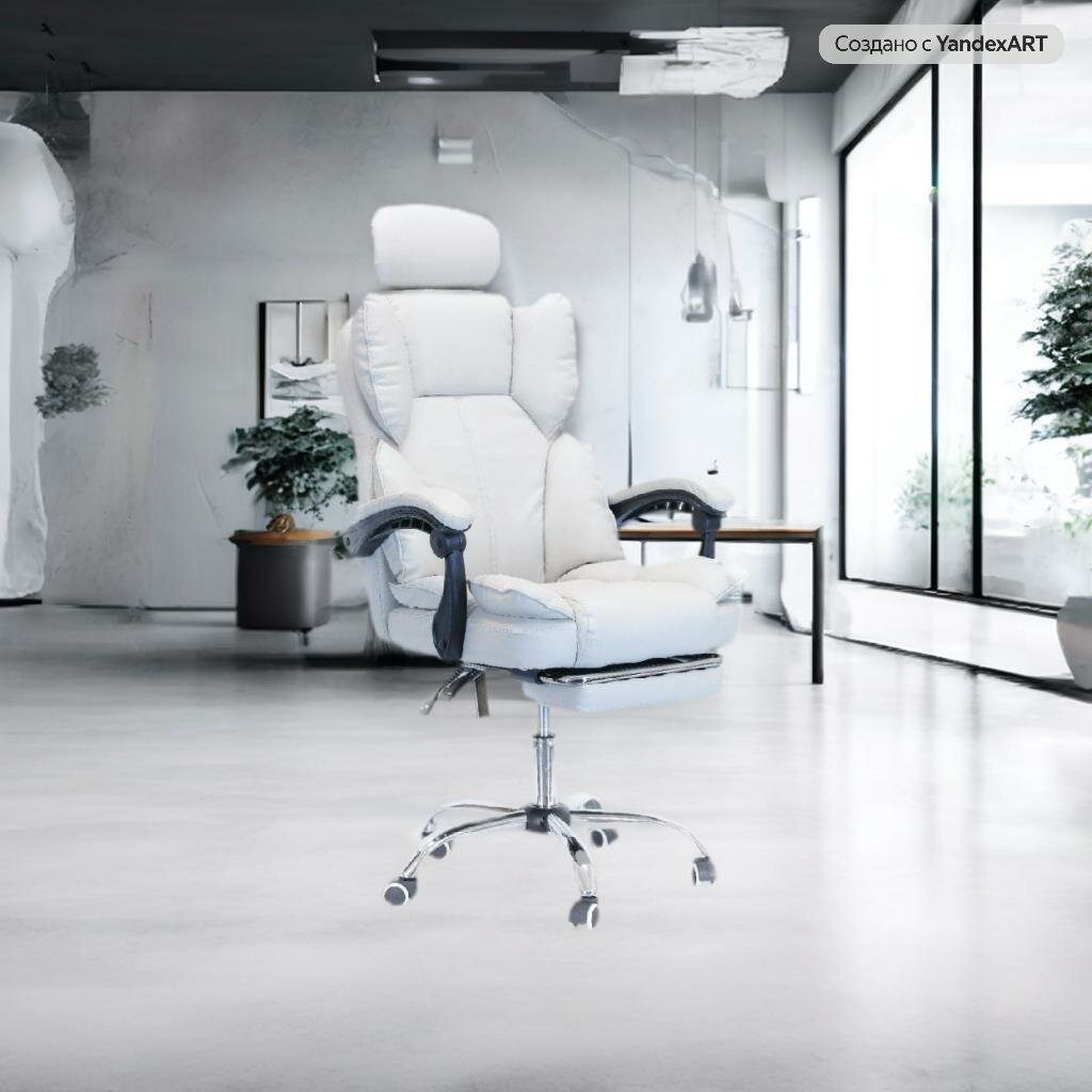 Мягкое компьютерное кресло для дома и офиса, с подставкой для ног, белое информация: