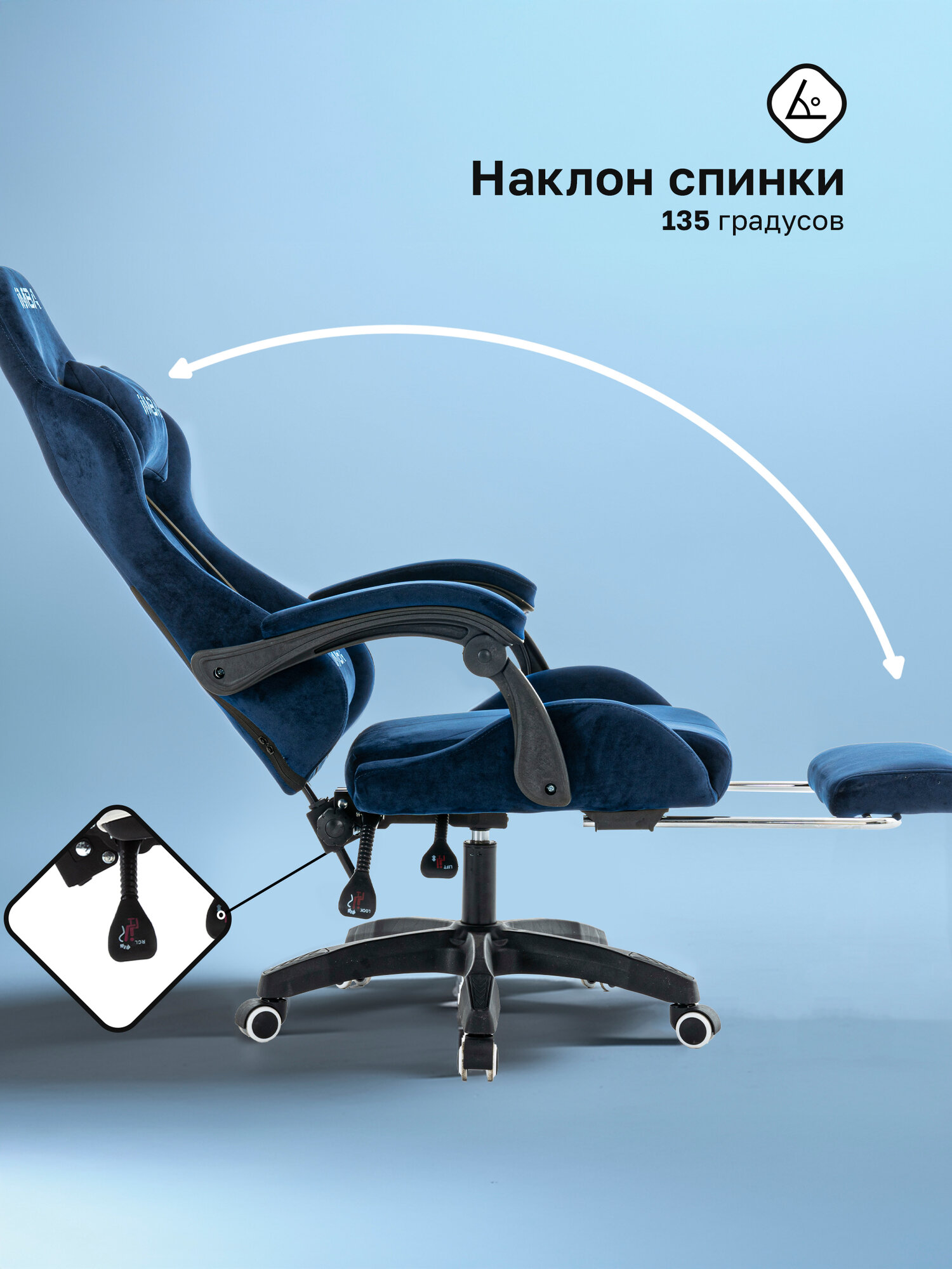 Кресло компьютерное IMBA, игровое, геймерское, с подставкой для ног, подголовником и подлокотниками, велюр информация: