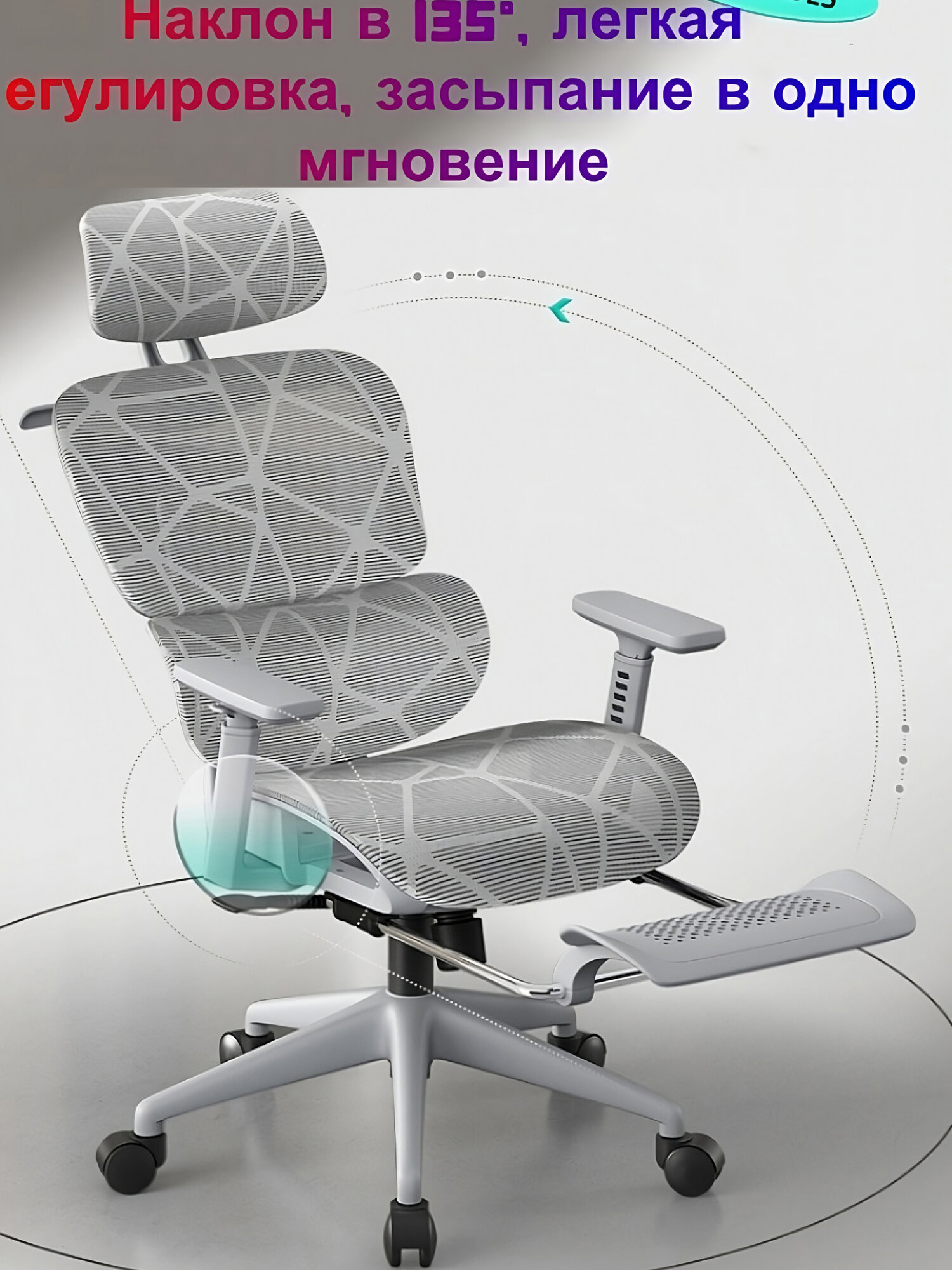 10 цен на Офисное кресло RY-H900, с механизмом качания и подставкой для ног, цвет светло-серый
