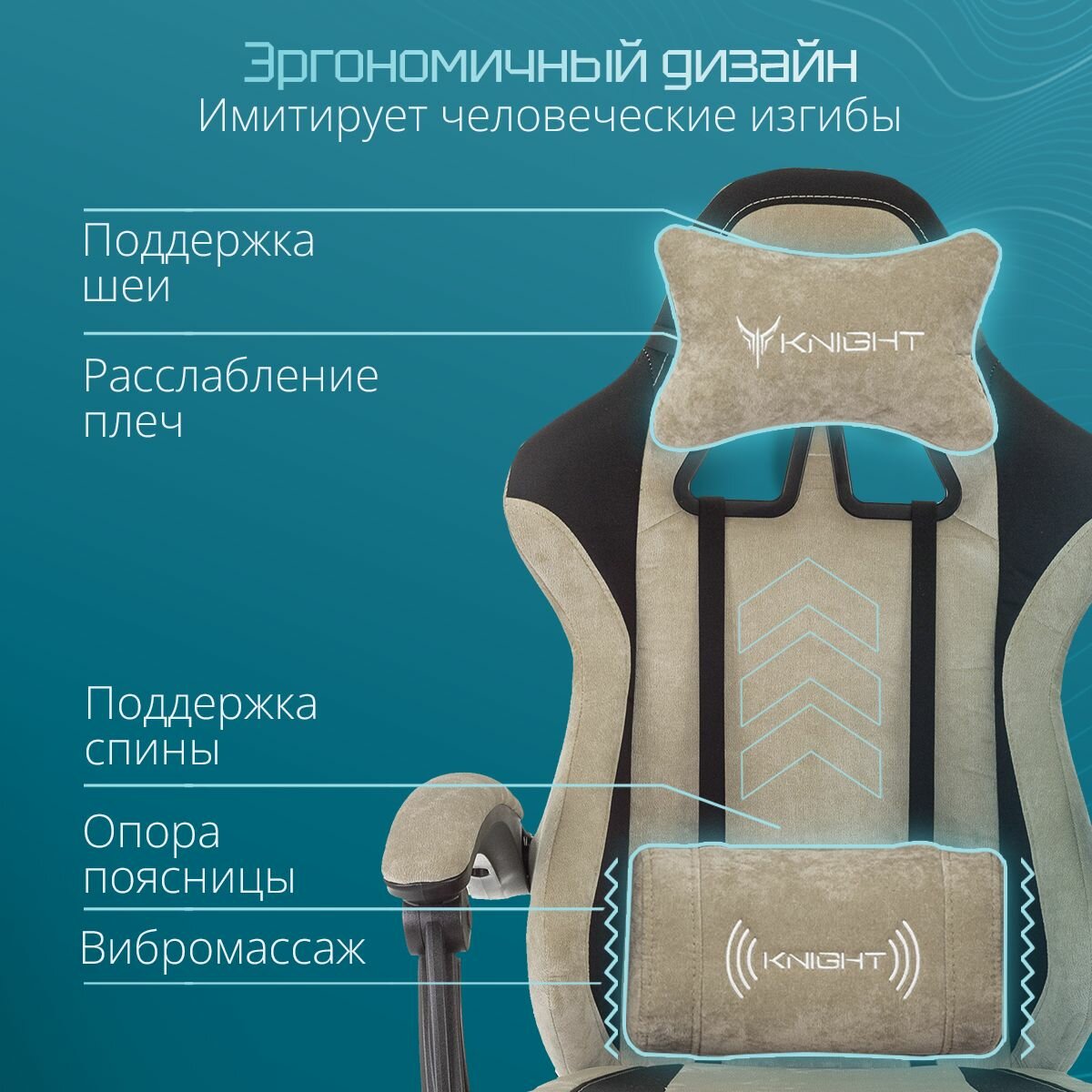 10 цен на Кресло игровое Knight Custom/F бежевый/черный с подставкой для ног и вибромассажем