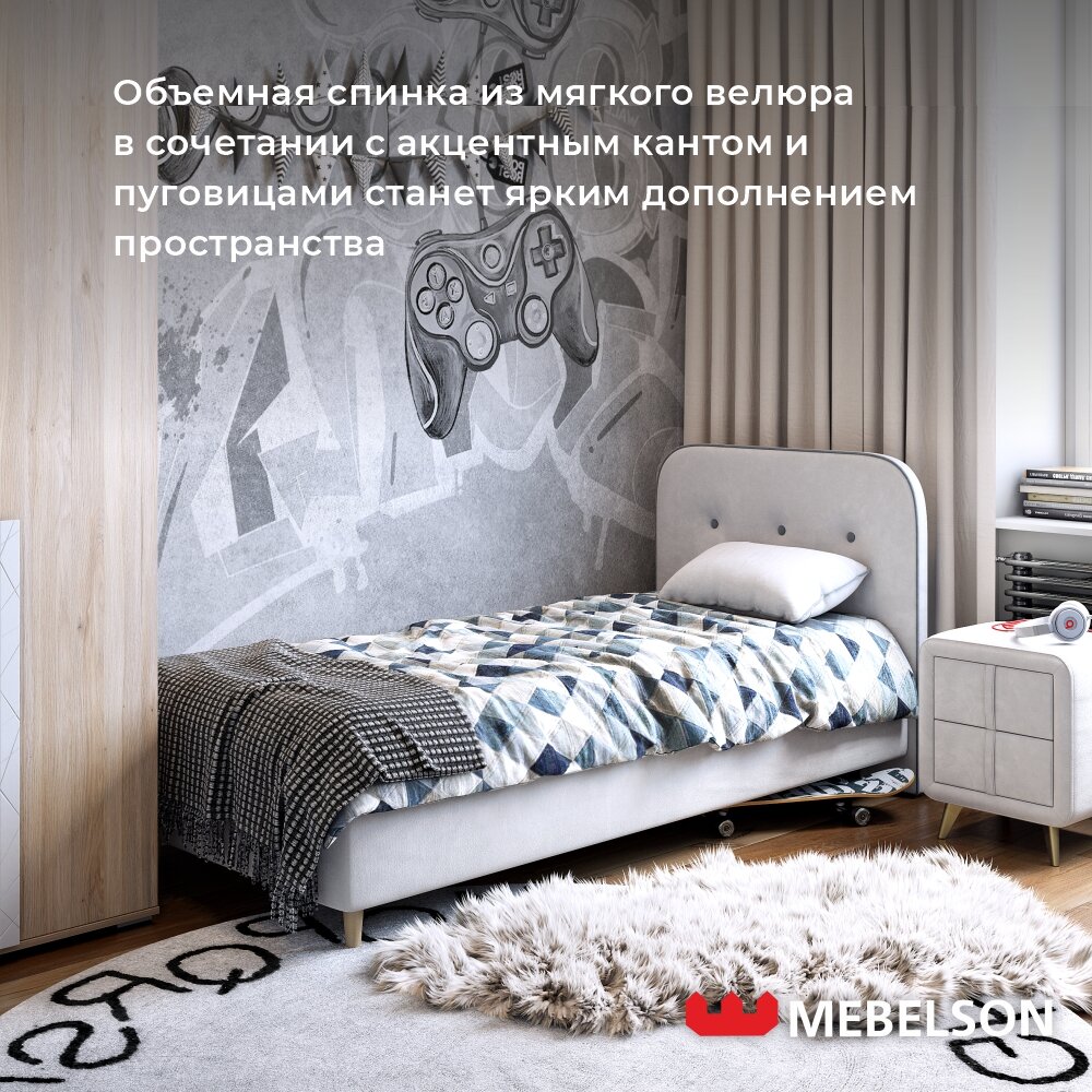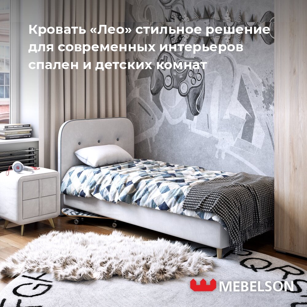 Отзывы на Кровать с основанием "Лео" 90х200 см, цвет Галька/графит велюр, Mebelson