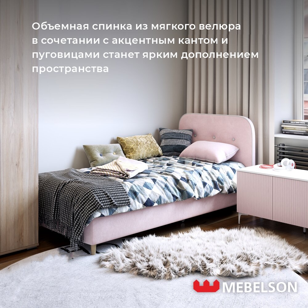Отзывы на Кровать с основанием "Лео" 90х200 см, цвет Нежно-розовый/графит велюр, Mebelson